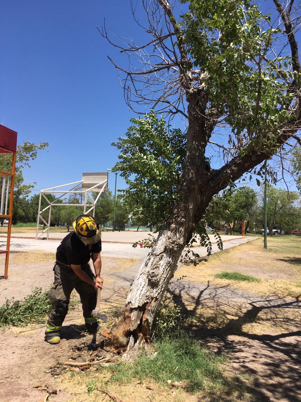 Así mismo, el personal de Bomberos apoyó en un servicio en el cual cortaron un árbol de 8 metros de altura que estaba a punto de caer sobre la avenida Vicente Guerrero y Lago de Pátzcuaro.