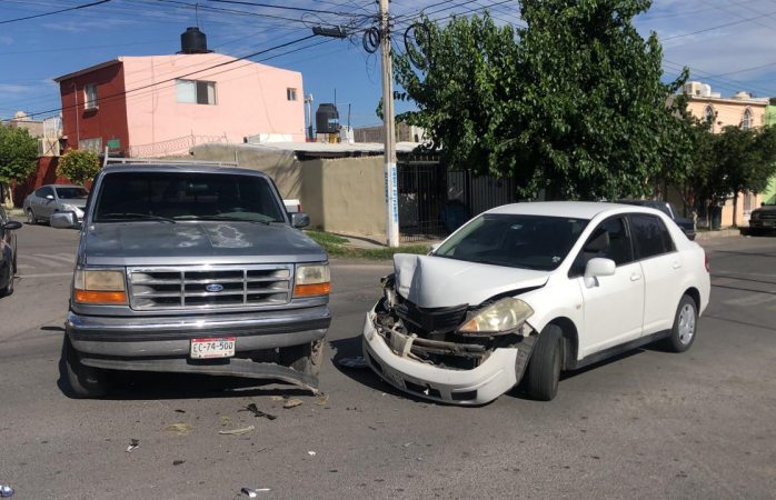 Chihuahua.- Un accidente vehicular se registró sobre el cruce de la avenida González Cosío y Pinabete en la colonia Las Granjas.