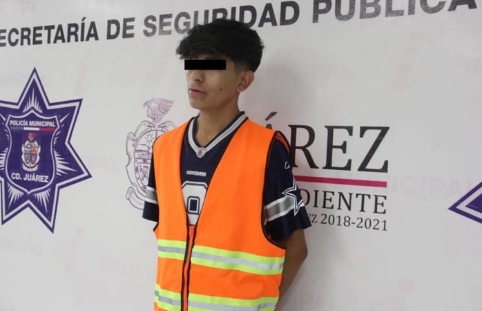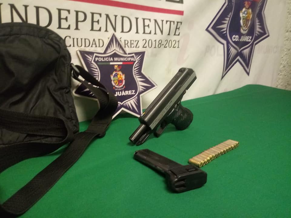 Juárez.- Elementos de la Policía Municipal realizaron el arresto de dos integrantes del grupo delictivo “Artistas Asesinos”, identificados como Cesar Omar V. M. alias “El Pollo” y un adolescente de 16 años, por su presunta responsabilidad en la comisión de delitos contra la salud y violación a la ley federal de armas de fuego y explosivos.