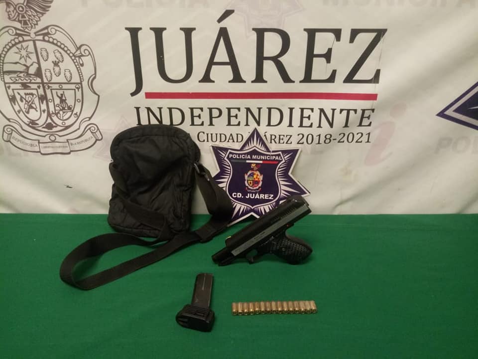De inmediato los oficiales se trasladaron hasta dicho cruce en donde localizaron a dos sujetos que reunían las características proporcionadas, motivo por el cual los abordaron y al realizarles una inspección preventiva por protocolos de seguridad, le aseguraron a Cesar Omar V. M. de 19 años, un arma de fuego calibre 380 con un cargador abastecido con 15 cartuchos útiles.