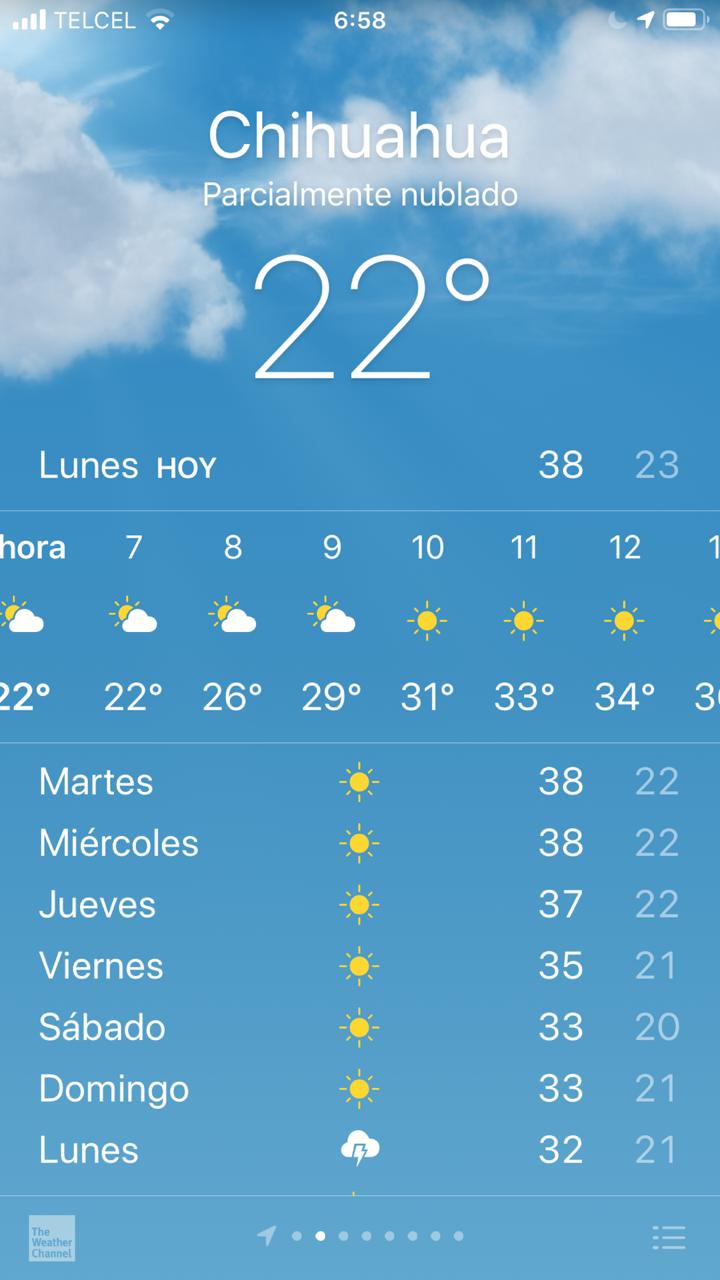 Chihuahua.- El lunes será más caluroso al pronosticarse una temperatura de 38 grados centígrados.