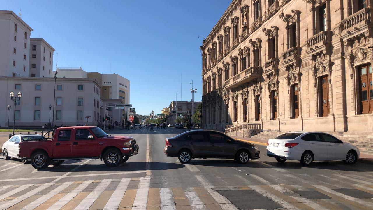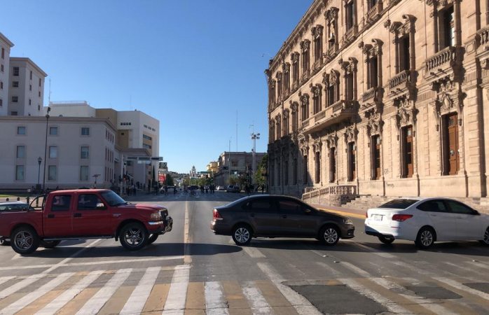 Chihuahua.- Decenas de personas bloquearon el centro de la ciudad donde exigen la reapertura de gimnasios en la ciudad.