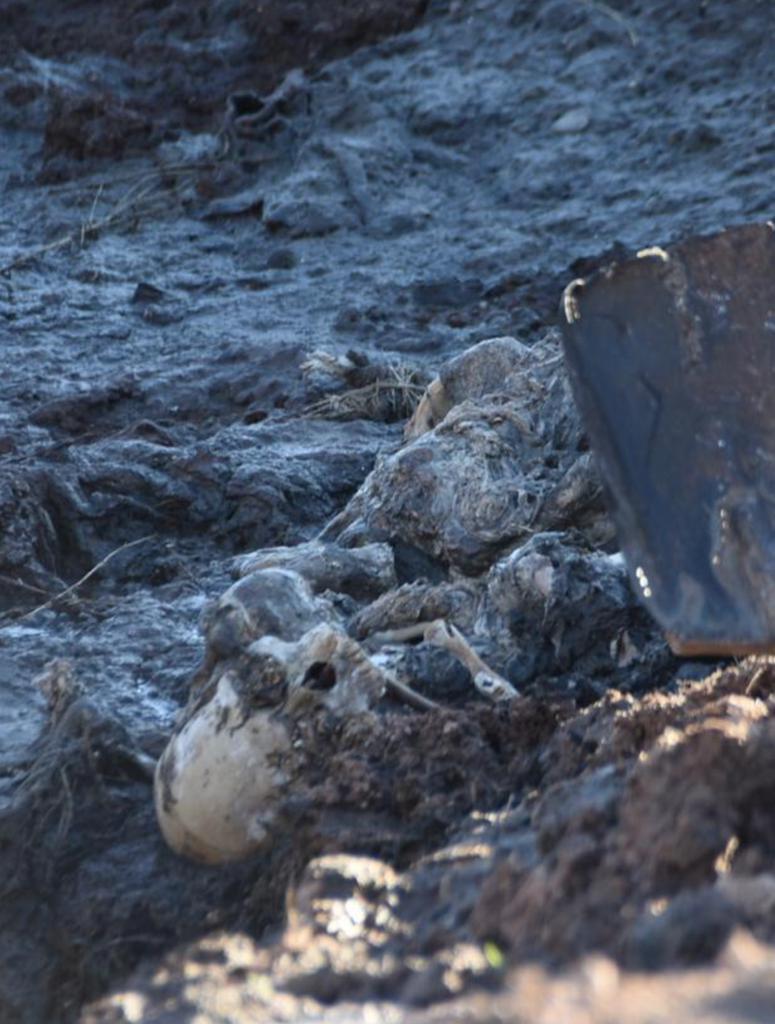Los primeros informes indican que al parecer se trata de un una pierna y una costilla.