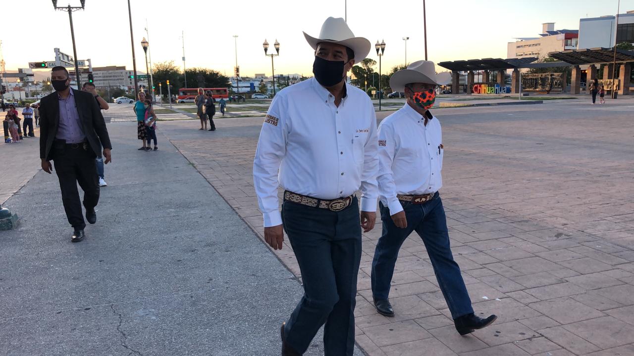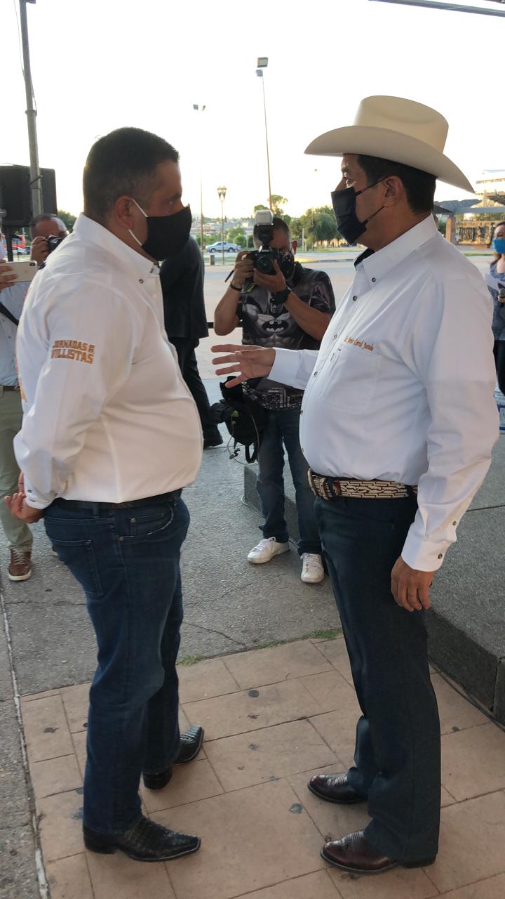 Chihuahua.- El gobernador del estado, Javier Corral Jurado, y el alcalde de Parral, Alfredo Lozoya, recibieron esta tarde a los miembros de la caravana de las Jornadas Villistas en un poco concurrido evento debido a la pandemia de coronavirus.