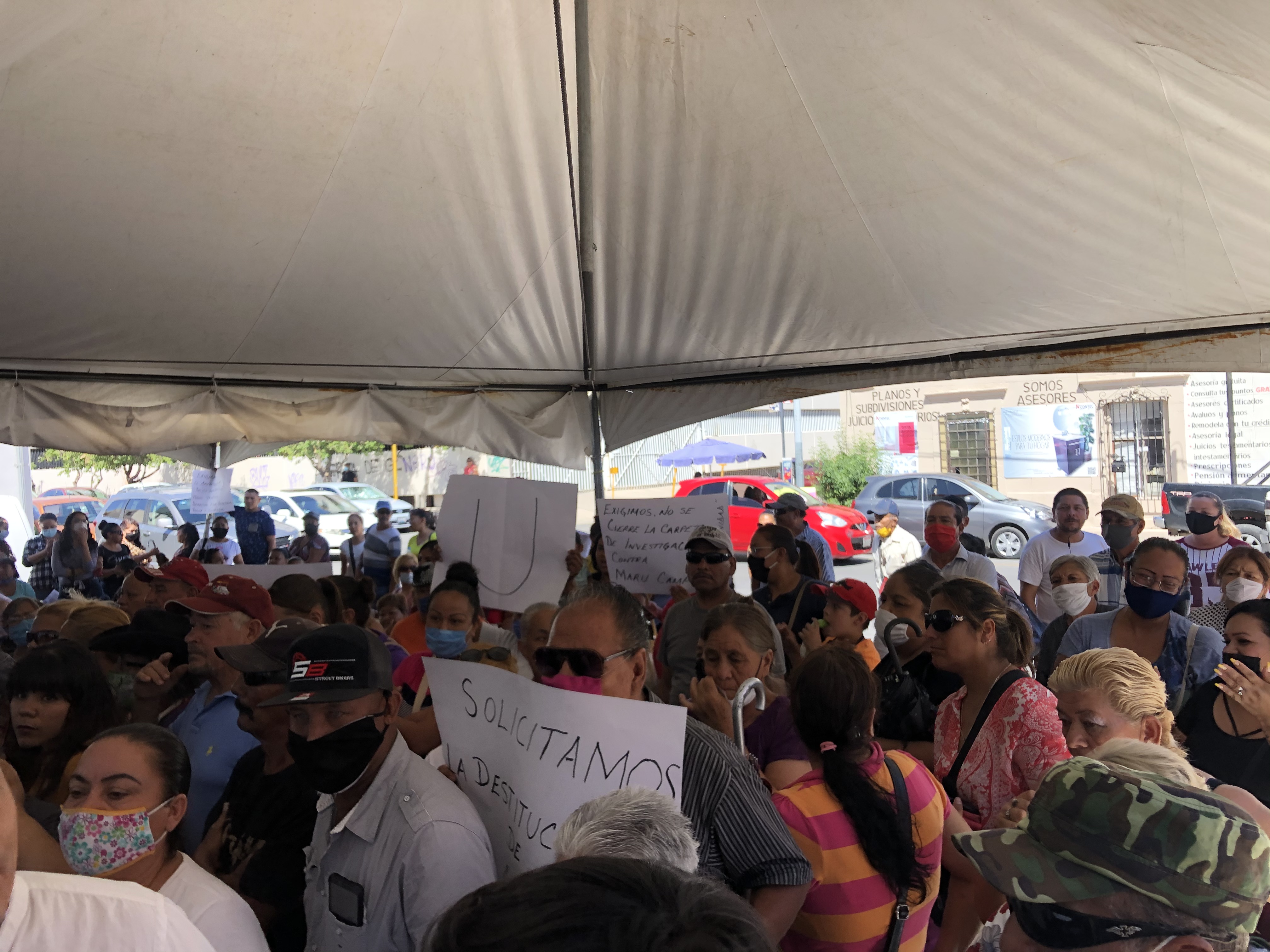 Chihuahua.- El delegado de Infonavit, Jesús Octavio García Sáenz, recibió una comitiva de vecinos inconformes que bloquearon las oficinas.