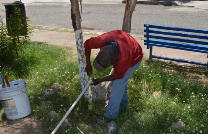 Mientras que en el parque ubicado en la colona Paseos de Chihuahua, se instalarán 90 metros de tubería, cuatro llaves de jardín y dos de paso.