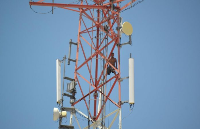 Chihuahua.- De nueva cuenta, Ángel Ramos, inició el descenso de la antena de comunicaciones, en el centro de la ciudad.