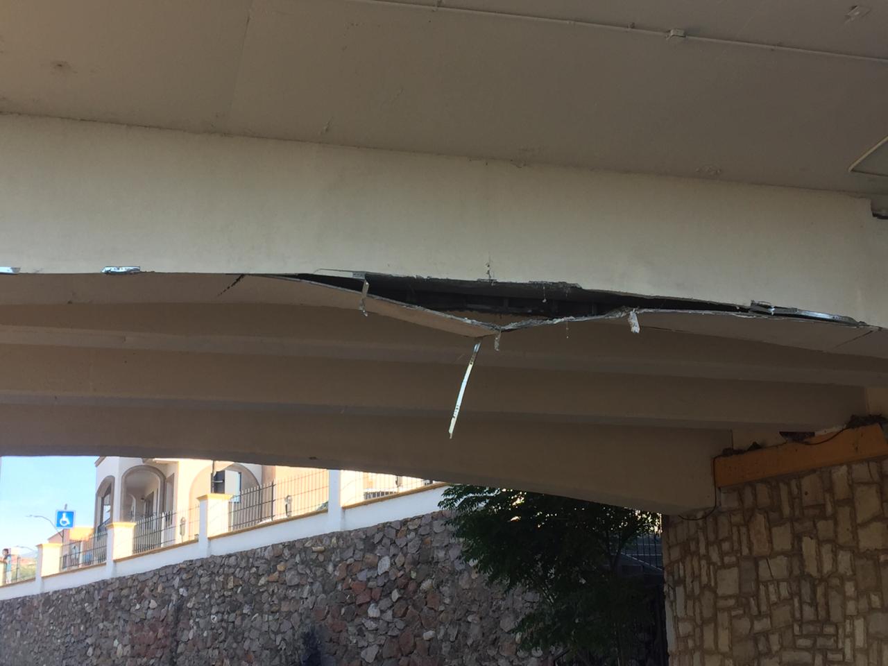 Parral.- El día de ayer se suscitó un hecho de transito sobre la vialidad del río en Parral, mismo en el que la caja de un camión de carga se impactó contra la parte de baja del puente Mena.