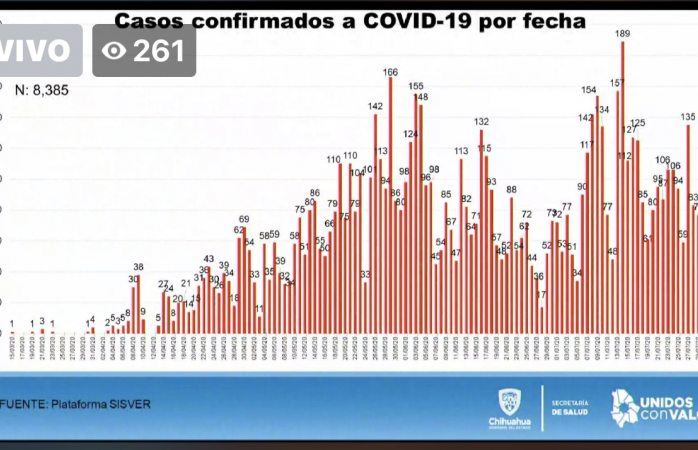 Chihuahua.- En la últimas 24 horas, la secretaría de salud confirmó un total de 79 nuevos casos y 4 defunciones más a causa del covid 19.