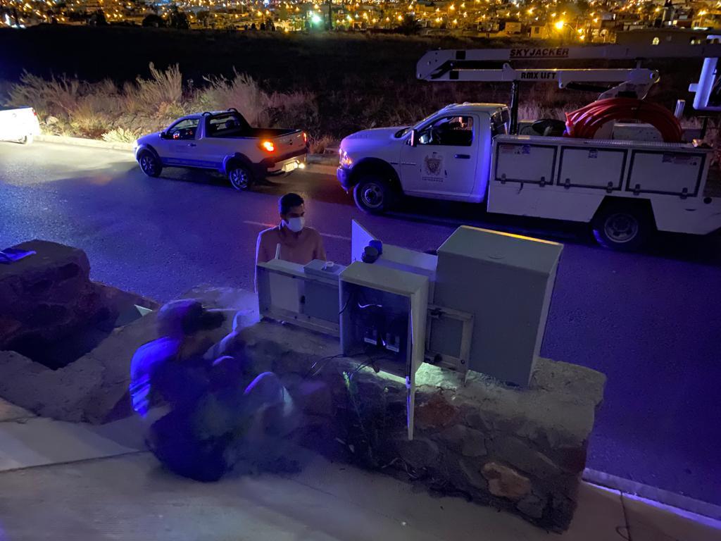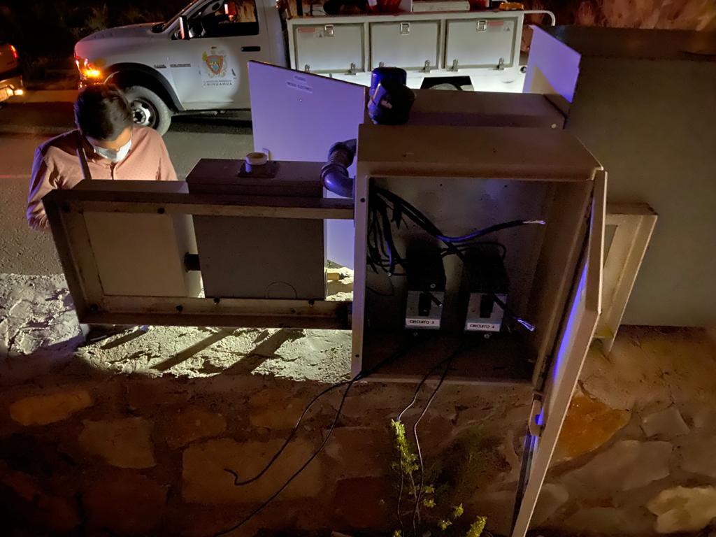 Chihuahua.- Sujetos desconocidos vandalizarón una estación de suministro de alumbrado público en la plaza denominada distrito uno.