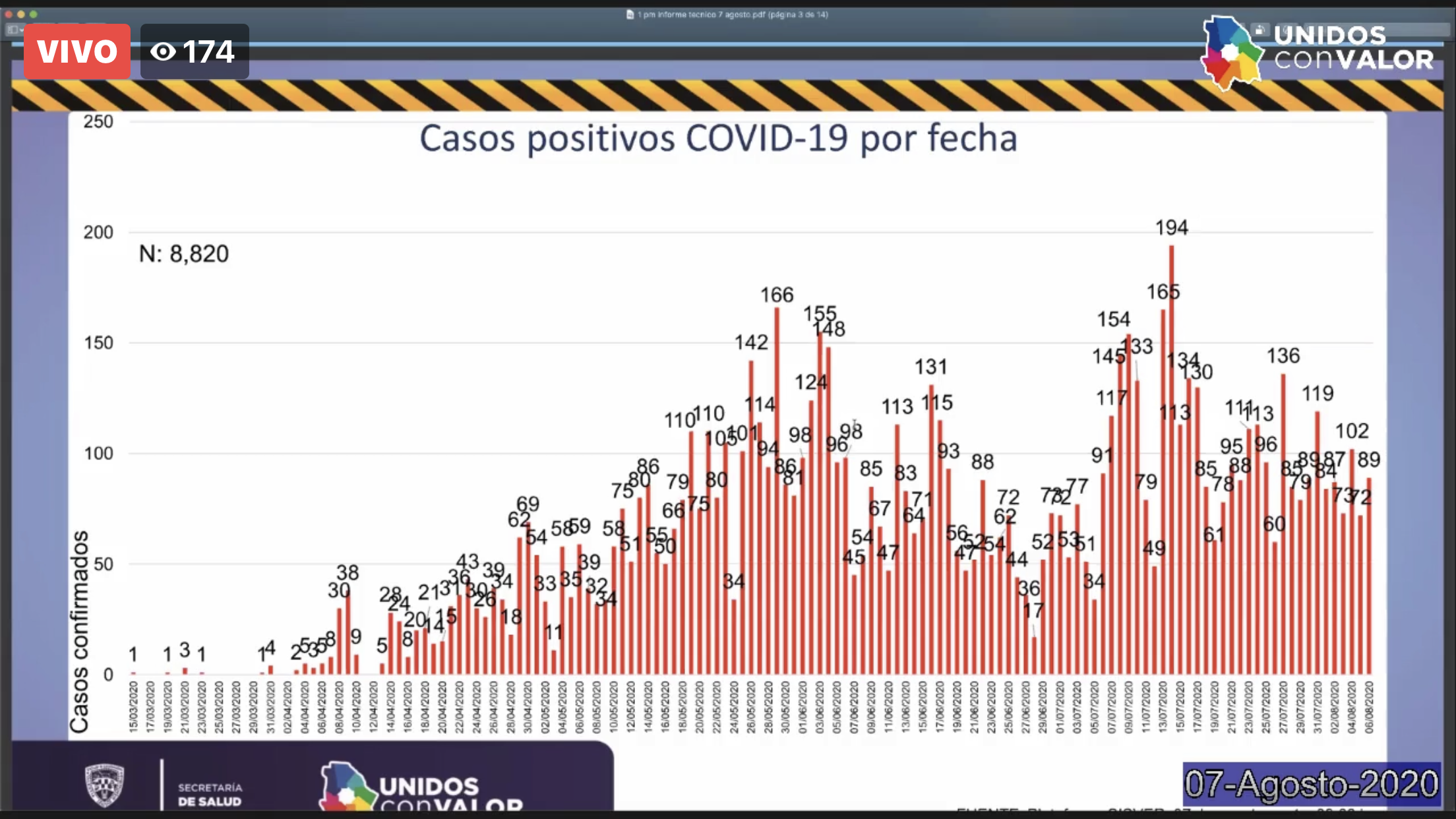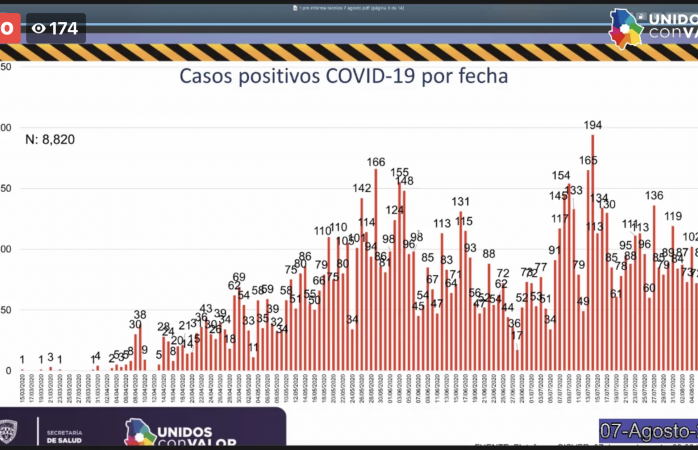 Por consiguiente, la cifra oficial se elevó a 8 mil 820 casos confirmados de covid en todo el estado.