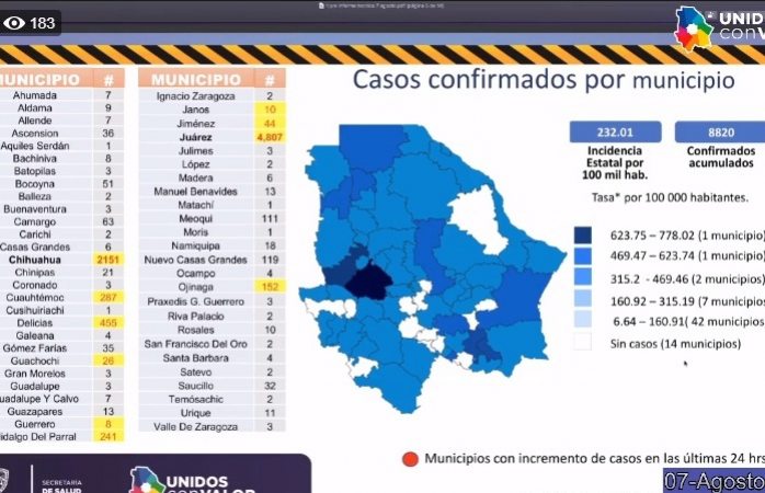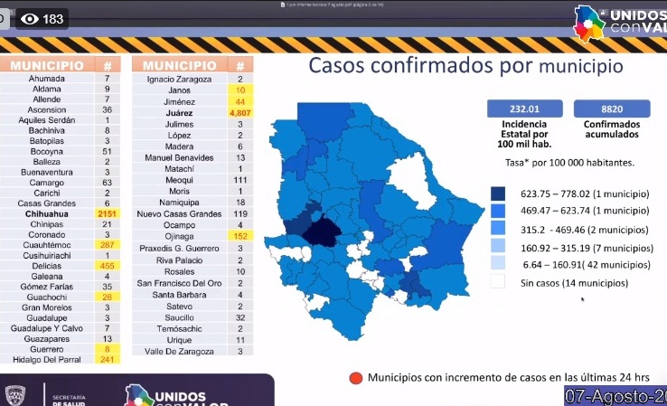Valenzuela Zorrilla, dijo que hasta este viernes en Chihuahua capital se tiene un registro de 2,151 casos de personas infectadas por el Covid-19.