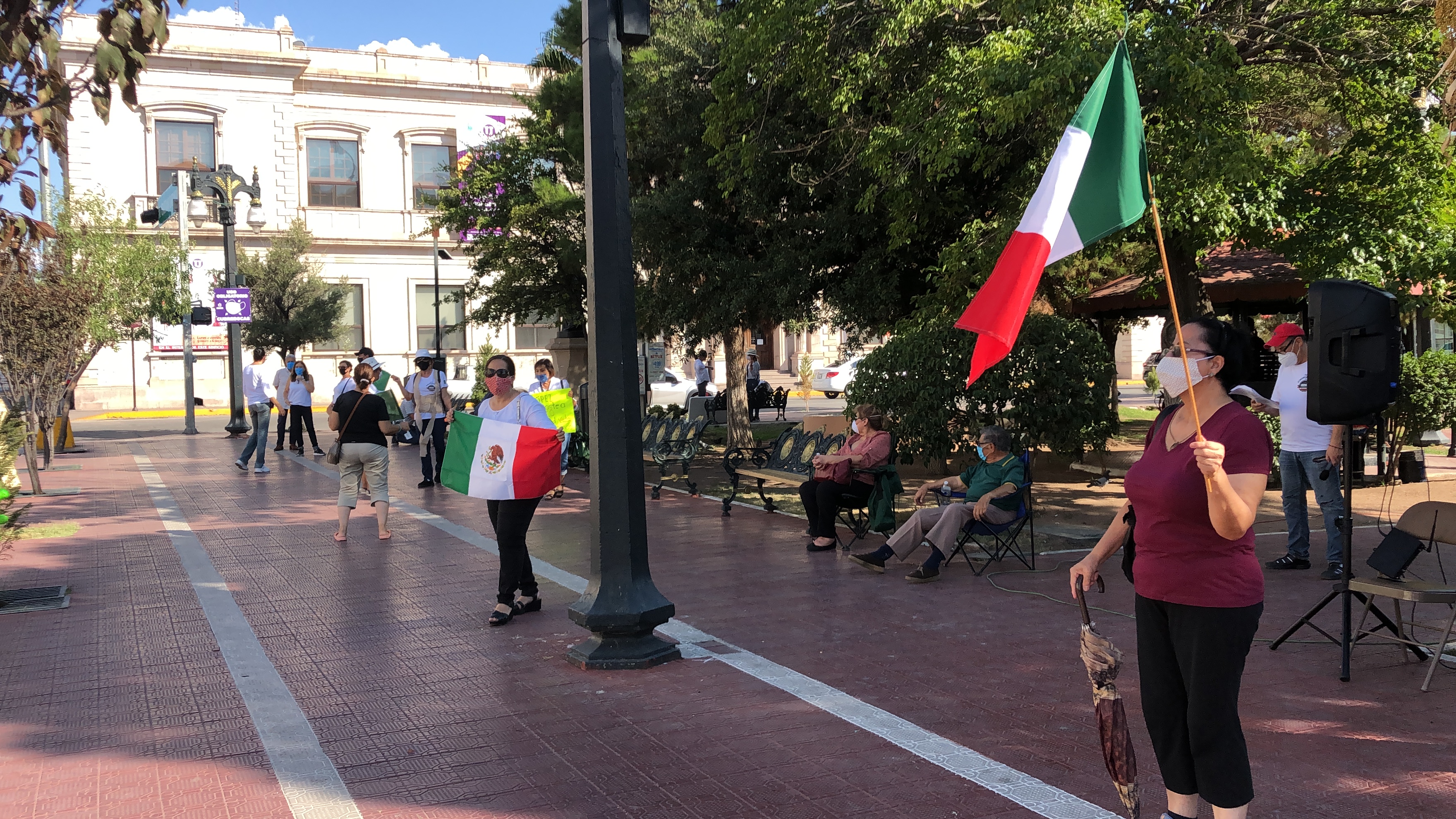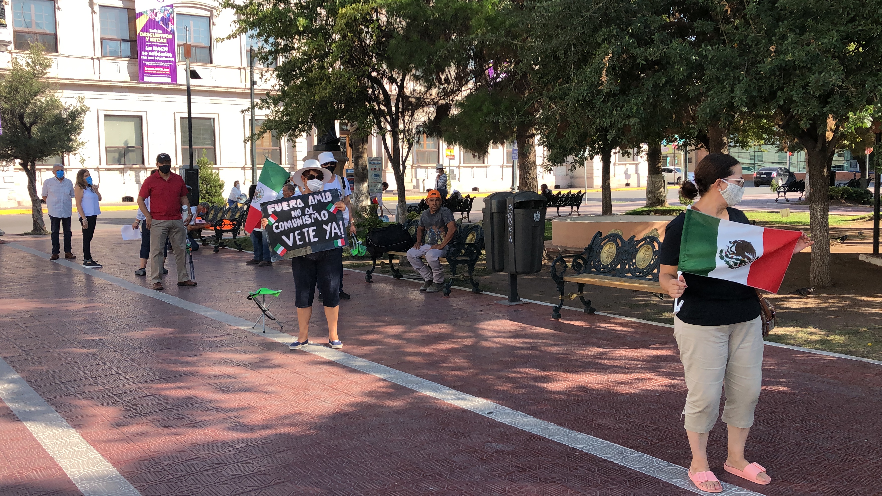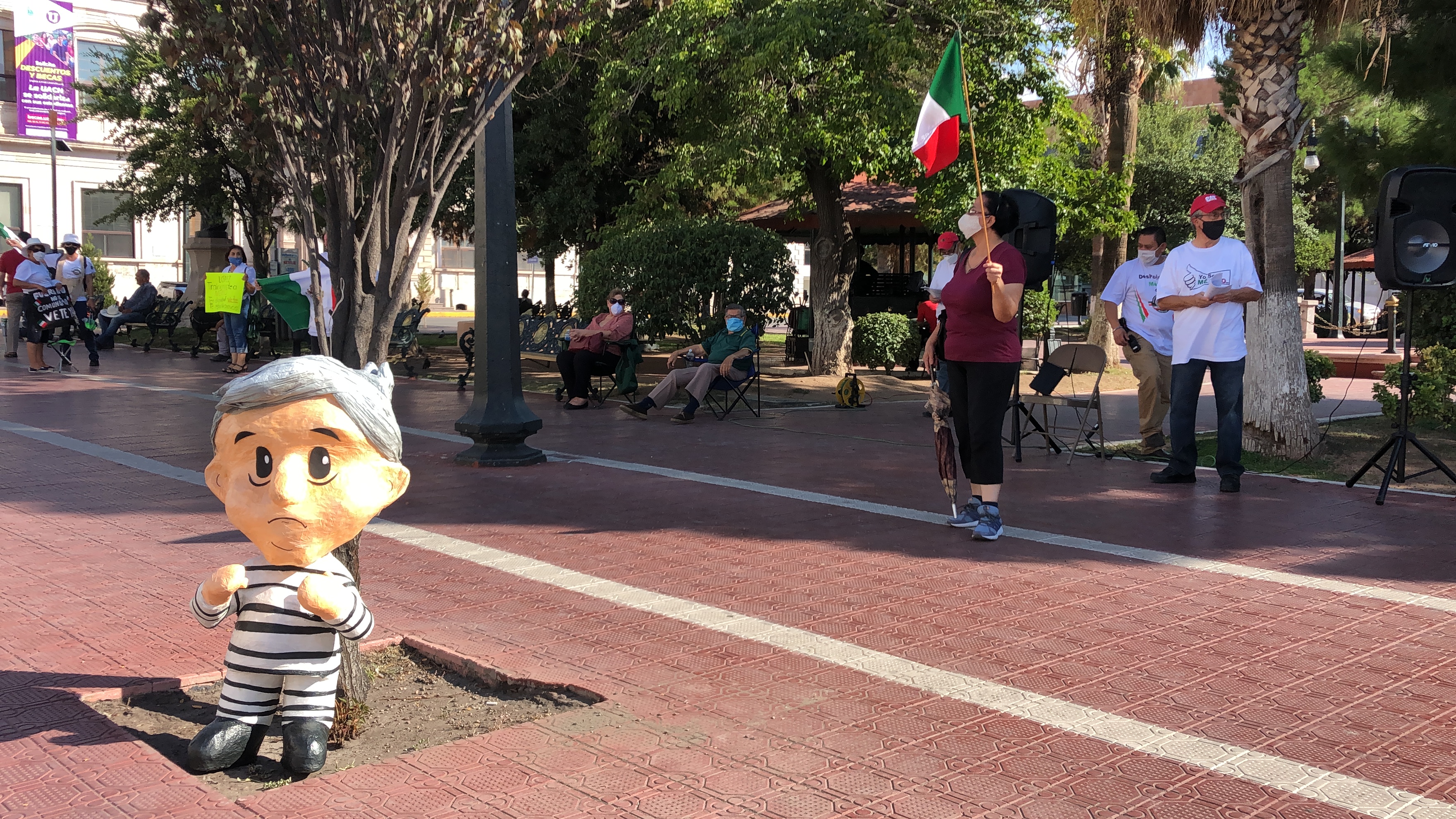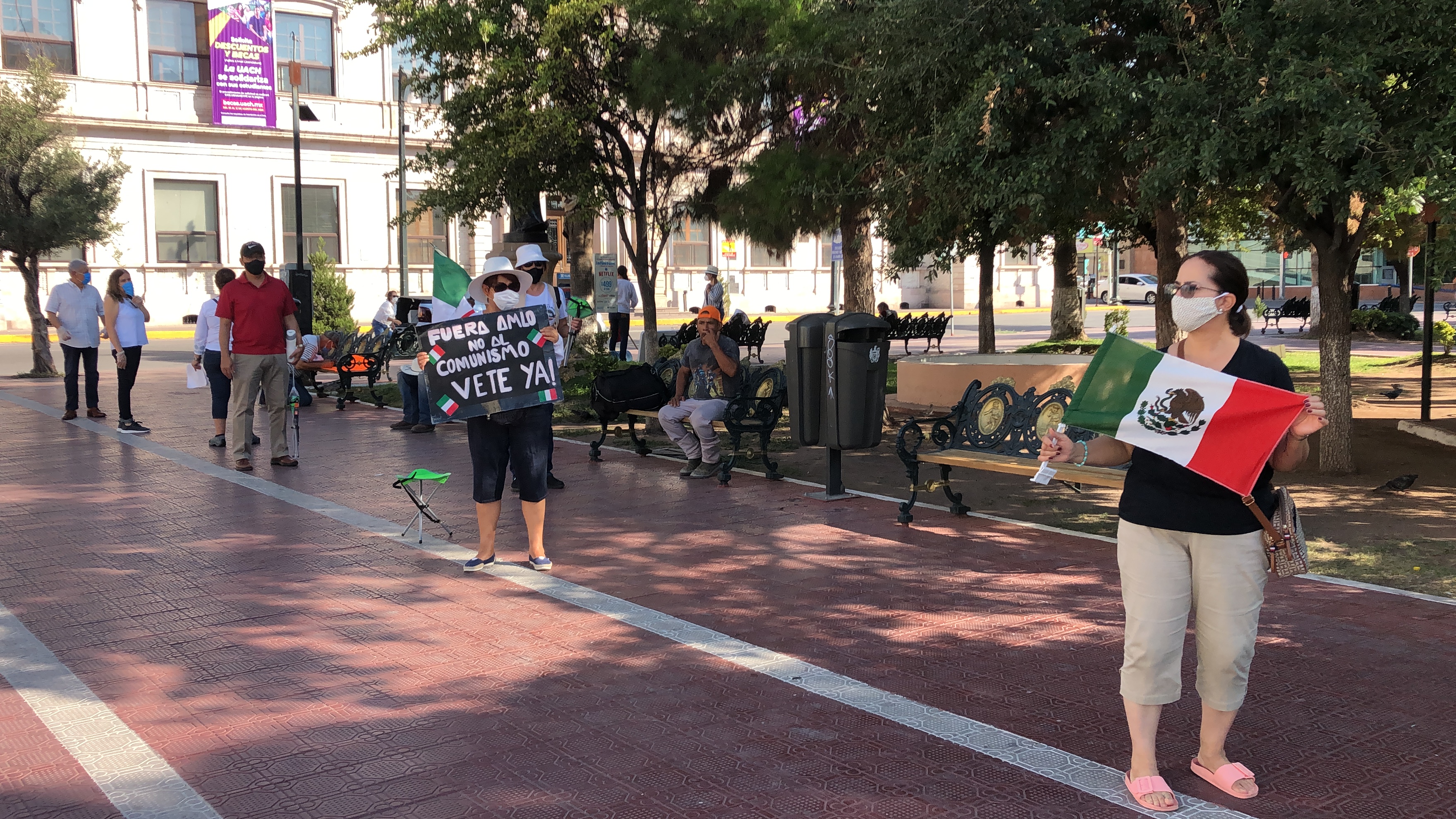 Chihuahua.- Cerca de 50 integrantes del frente nacional anti amlo (frenaa), realizaron la segunda jornada de toma de plazas públicas, para exigir la salida del presidente López Obrador.