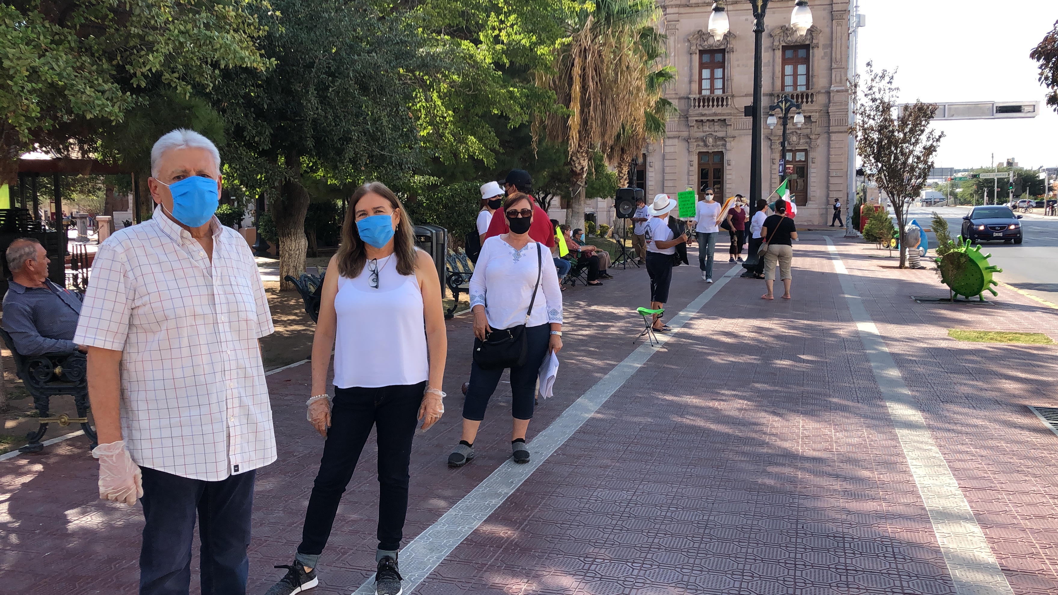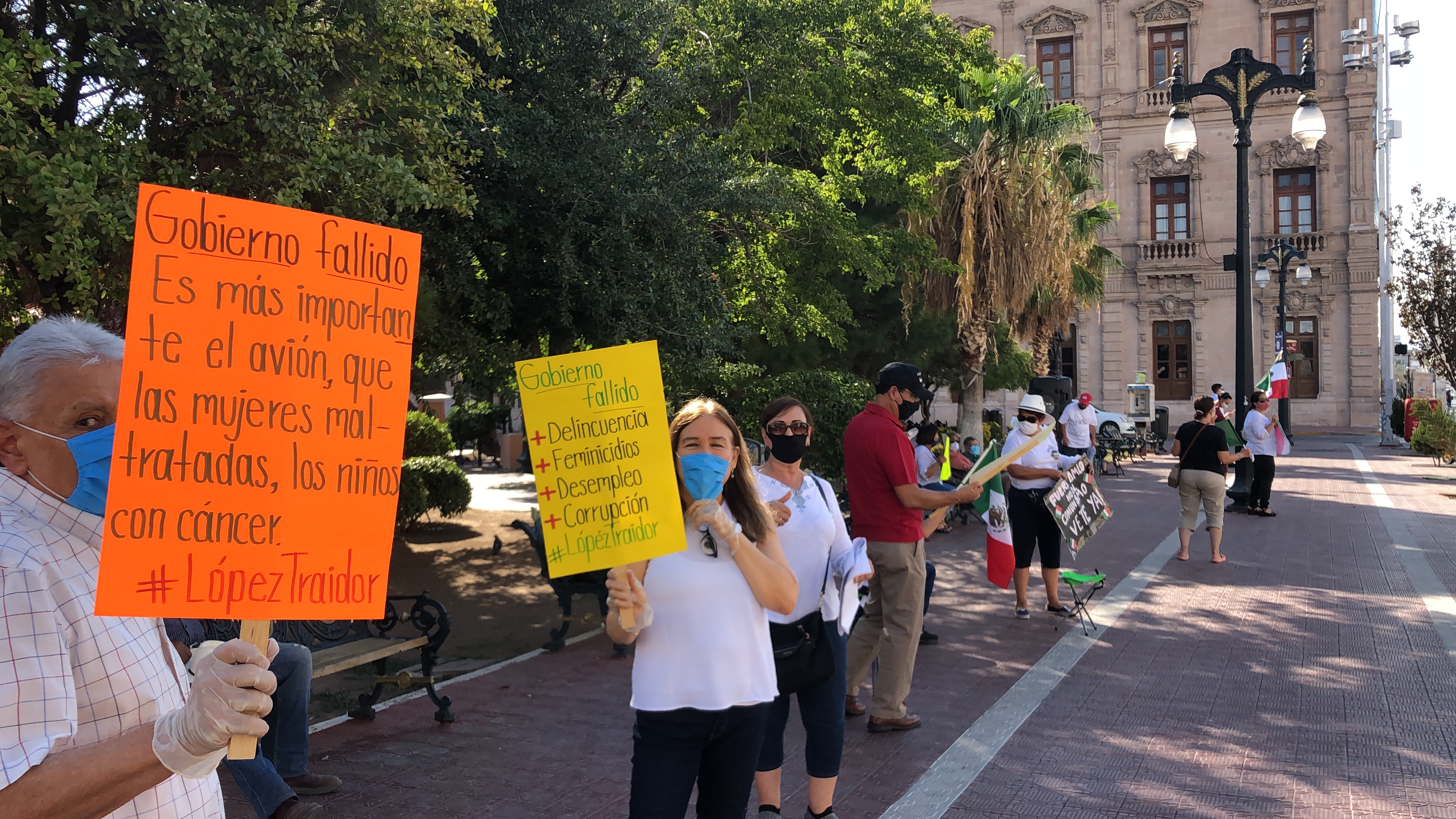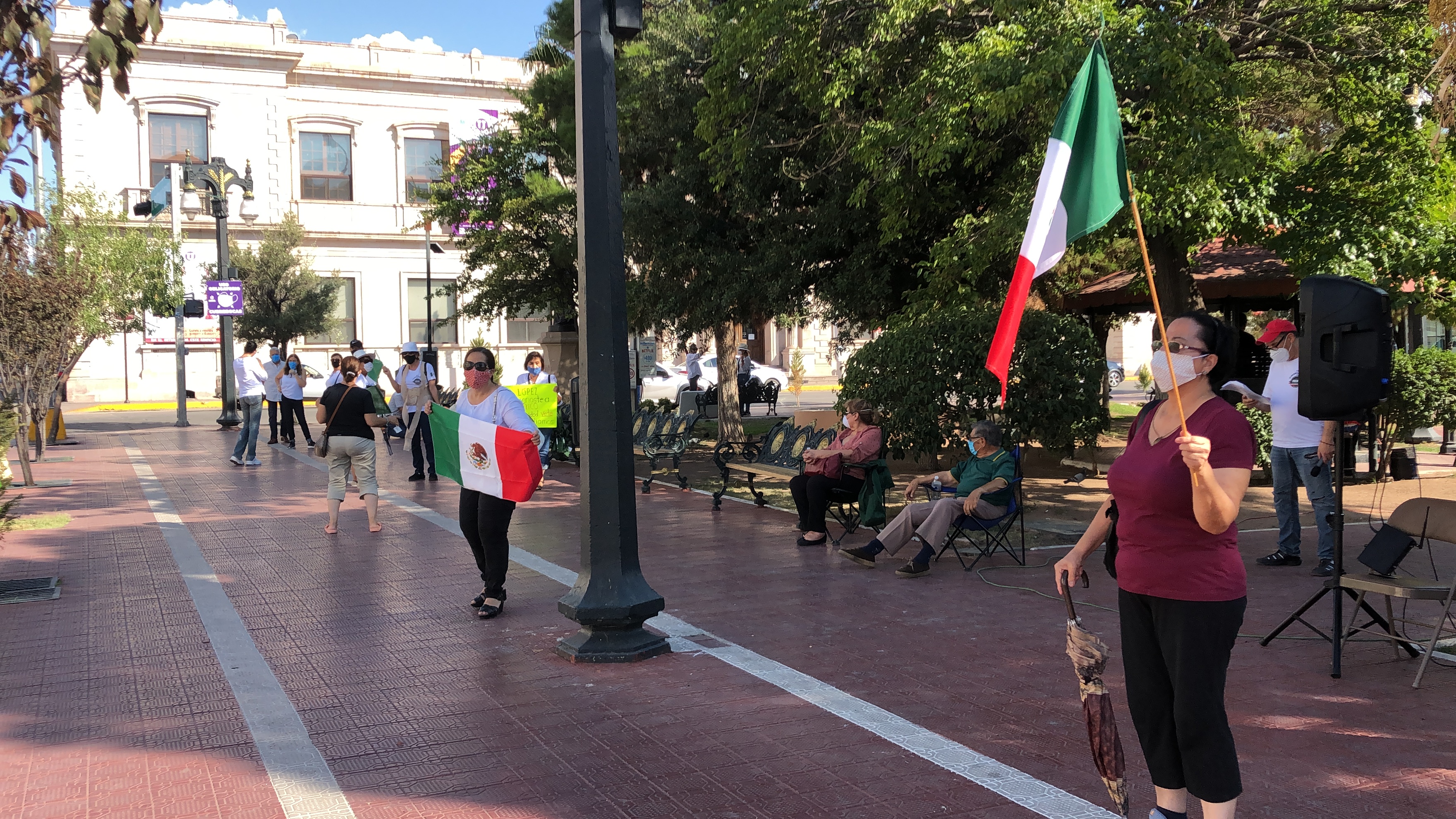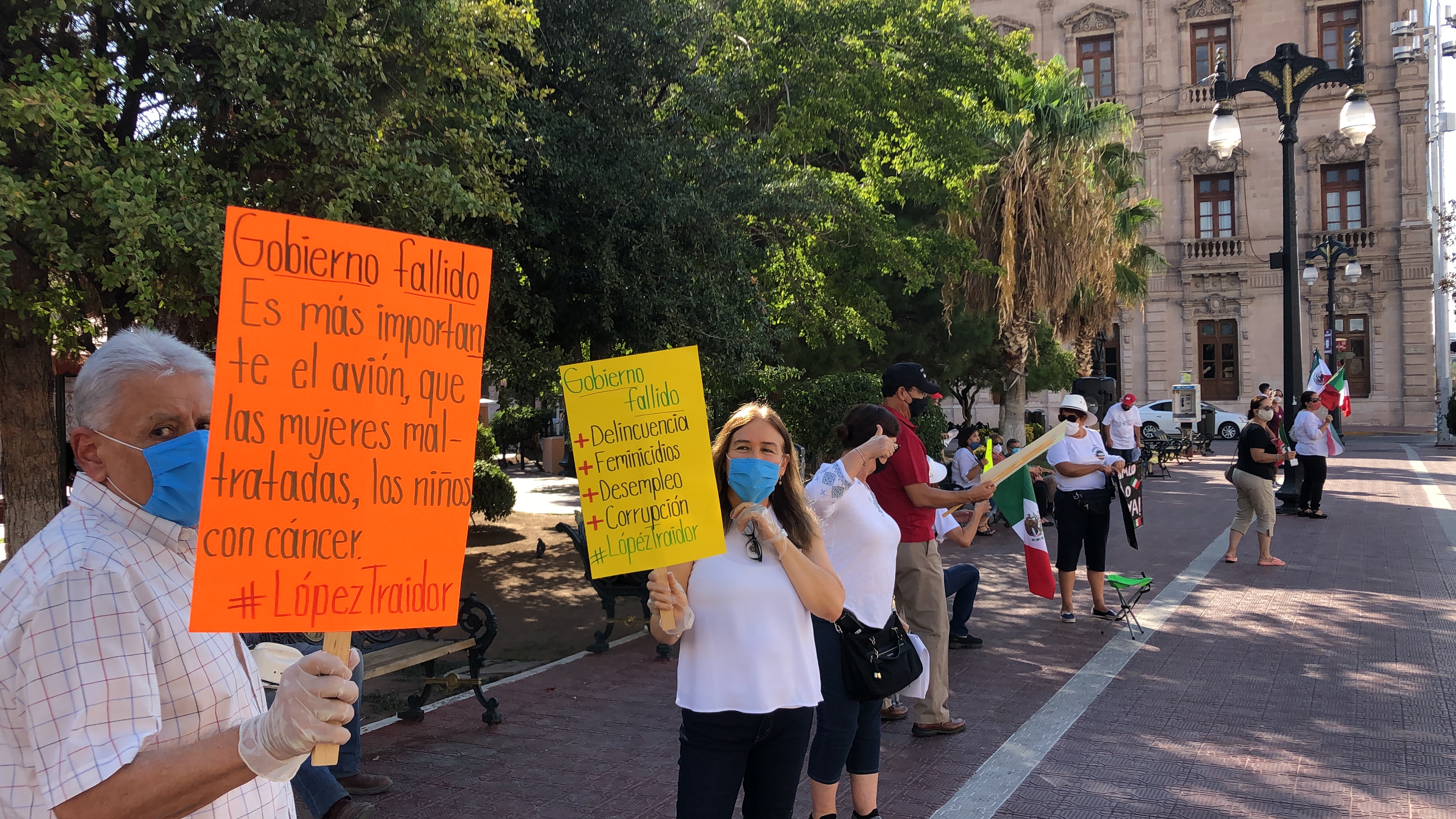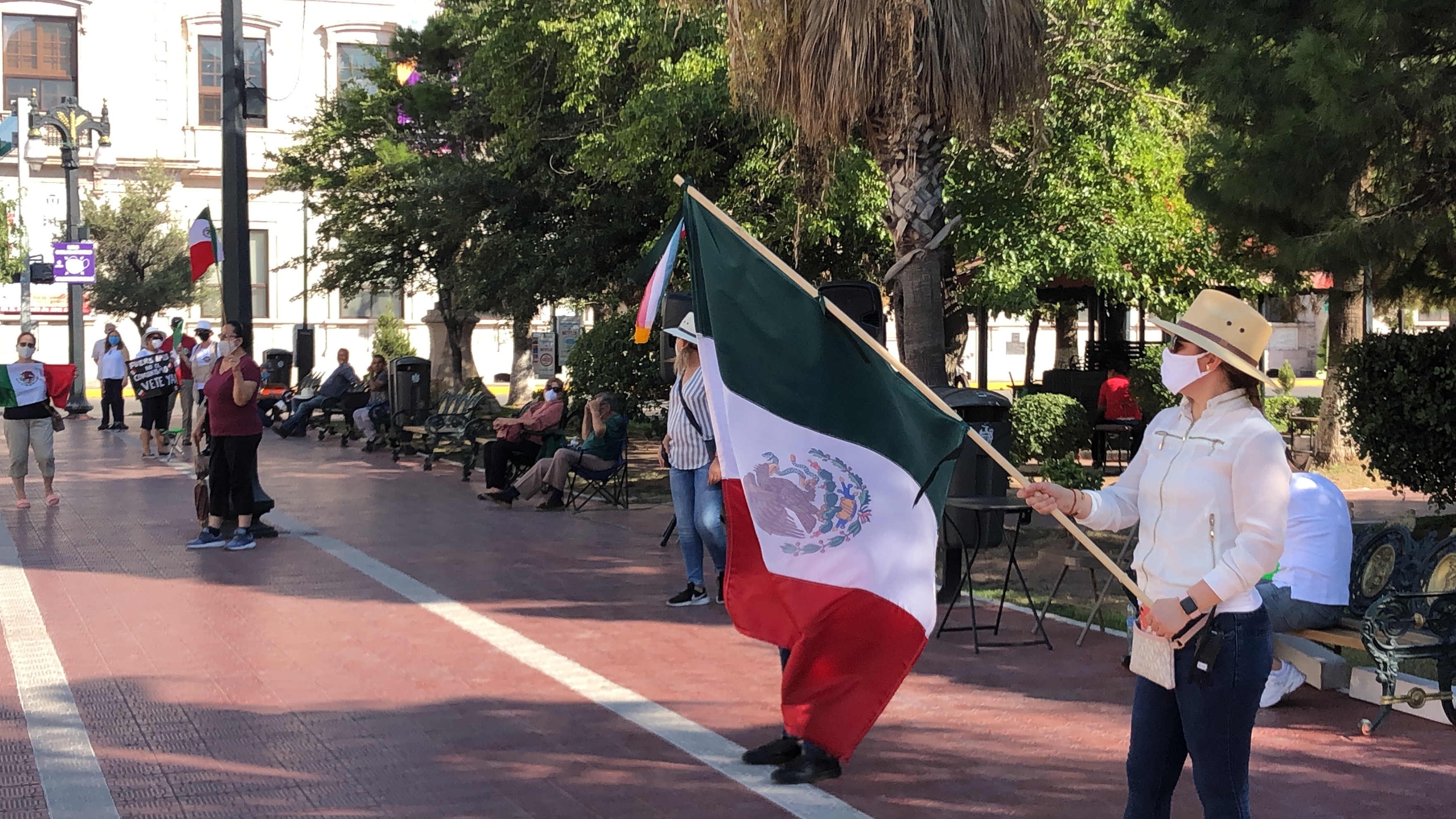 Chihuahua.- Cerca de 50 integrantes del frente nacional anti amlo (frenaa), realizaron la segunda jornada de toma de plazas públicas, para exigir la salida del presidente López Obrador.
