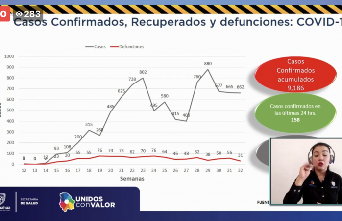Chihuahua.- La cifra oficial de contagios de covid en el estado, se elevó a 9 mil 186.