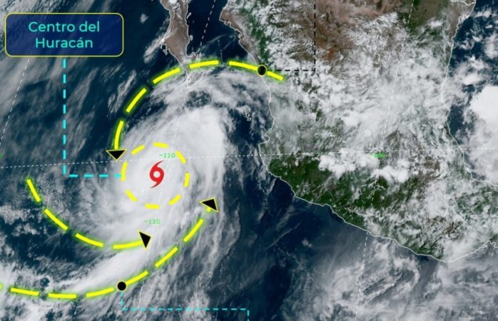Se espera que sus bandas nubosas generen lluvias puntuales fuertes en Baja California Sur, Nayarit y Jalisco.