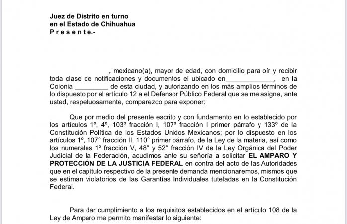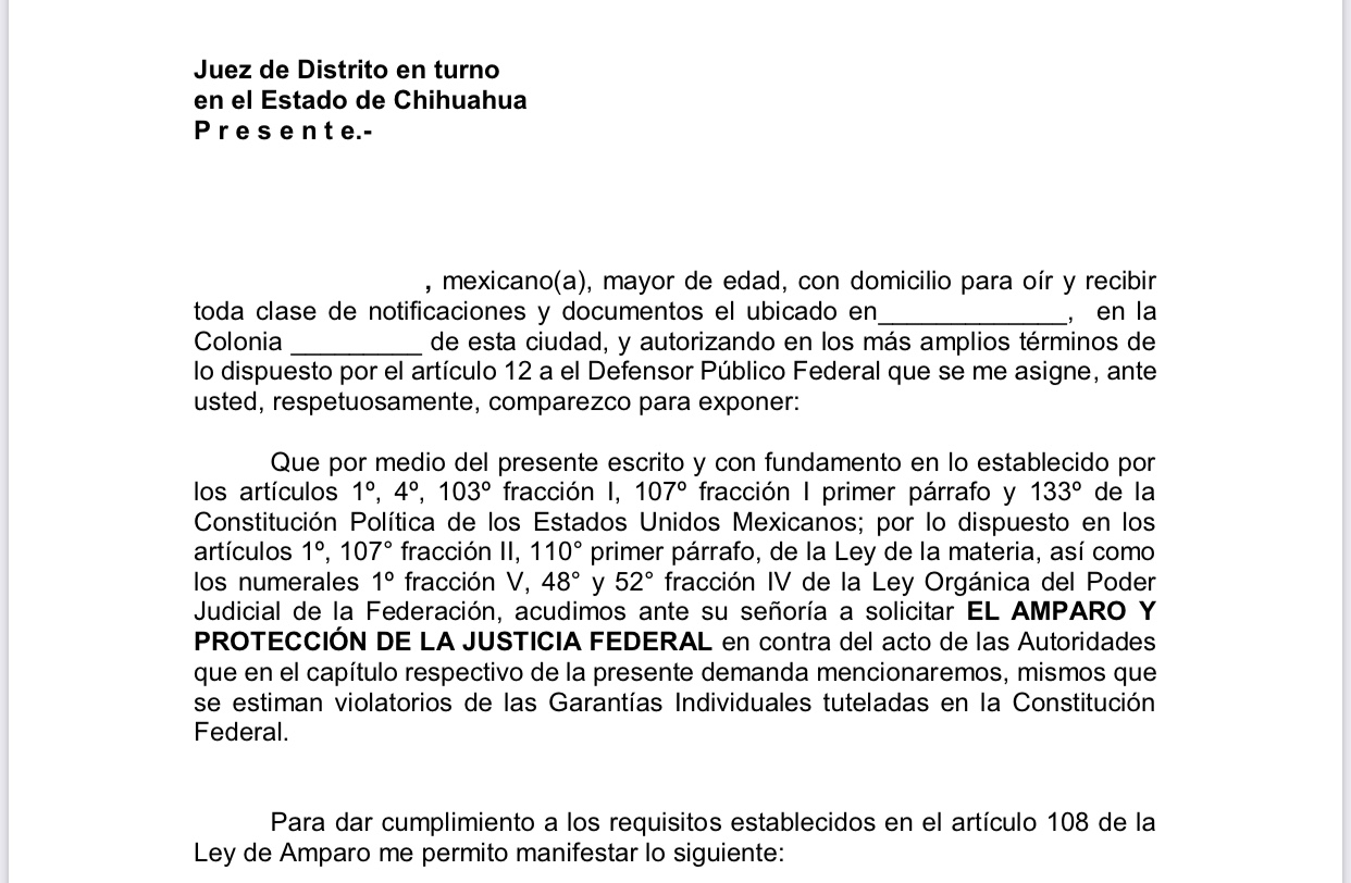Un despacho de abogados envió en forma anónima a este portal informativo el formato del amparo, a fin de que los estudiantes dispongan del mismo sin algún costo.