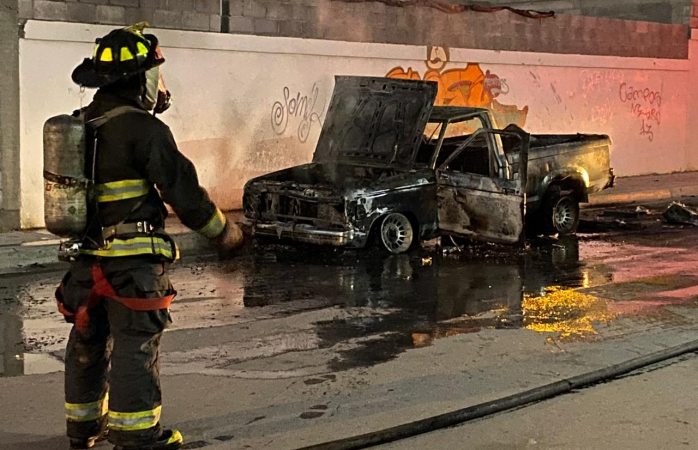 Chihuahua.- Esta mañana se reportó a los números de emergencia el incendio de una pick up que circulaba por las calles de vistas del sol ubicada al norte de la ciudad.
