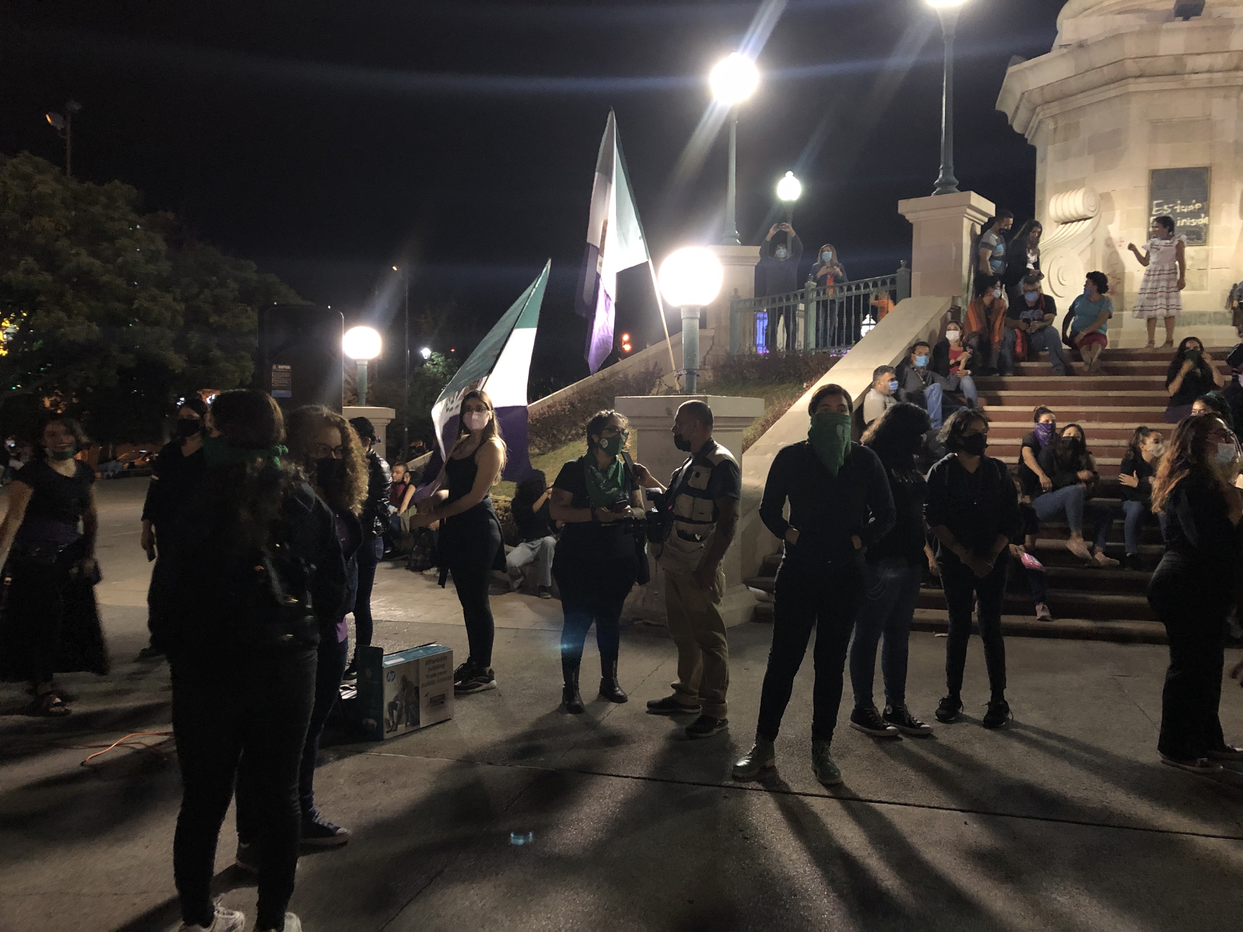 Fueron poco más de 50 mujeres las que se apostaron con un equipo de sonido, en las escaleras del Ángel.