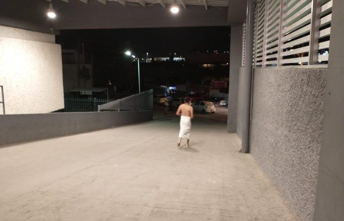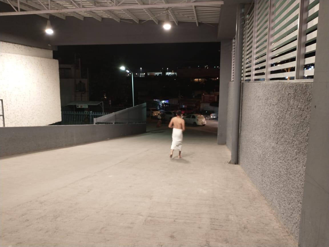 Elementos de la policía municipal indicaron que, así como se encontraba el joven no podían llevar el arresto acabó el hombre solamente anda en una toalla color blanca sin ropa interior. Para lo cual solo se quedaron hacer guardia en caso de algún suceso.