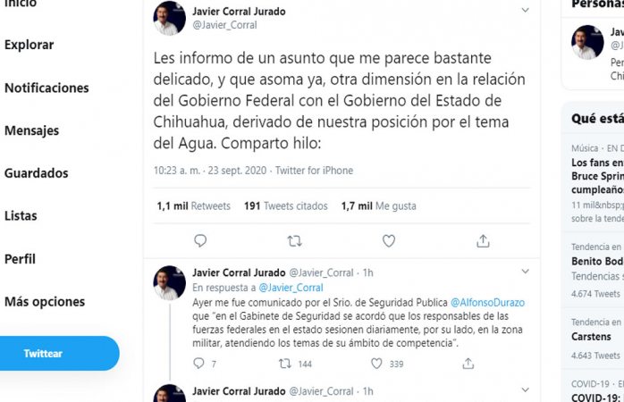 Chihuahua.- El gobernador del estado, Javier Corral, informó que las fuerzas federales se reunirán por su cuenta en una mesa paralela de seguridad.