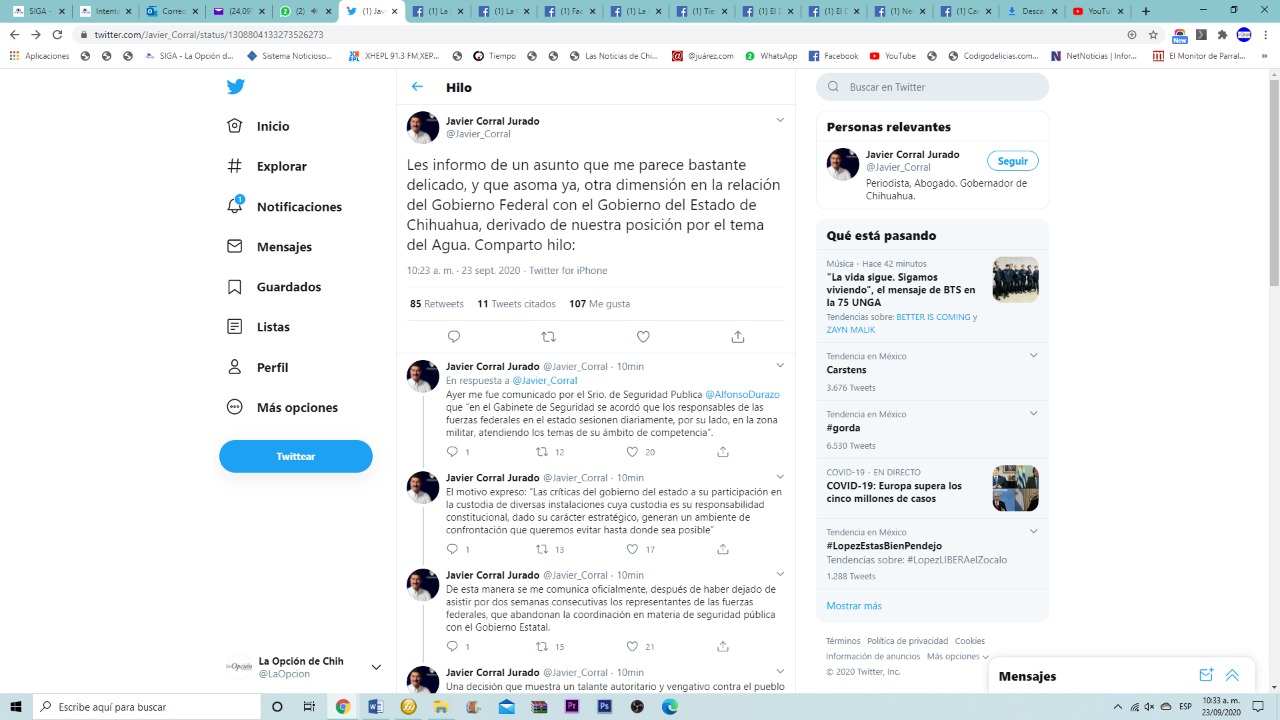 Pónte a trabajar, ya deje la grilla barata, a mi me parece que estás construyendo tu candidatura a la grande, ya deja de politizar todo desgobernador tú y tu narco cadavérico partido de acción nacional, alguna vez creí que eras un hombre honesto, ahora solo veo un panista vulgar y otras tantas frases más fueron colgadas por distintos usuarios de la red en las publicaciones de Javier Corral.