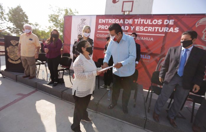 El evento se llevó a cabo en las instalaciones del Centro Comunitario Frida Kahlo, en la colonia que lleva el mismo nombre, al suroriente de la localidad, donde el Alcalde indicó que durante la Administración Independiente del 2016-2018, entregaron títulos de propiedad a 5 mil 200 familias y este año van más de 2 mil 500 titulaciones, y con apoyos con las dependencias estatales y federales se espera llegar a muchas familias más, ya que el reto es titular a otras 5 mil 500 familias más en lo que resta de esta Administración.