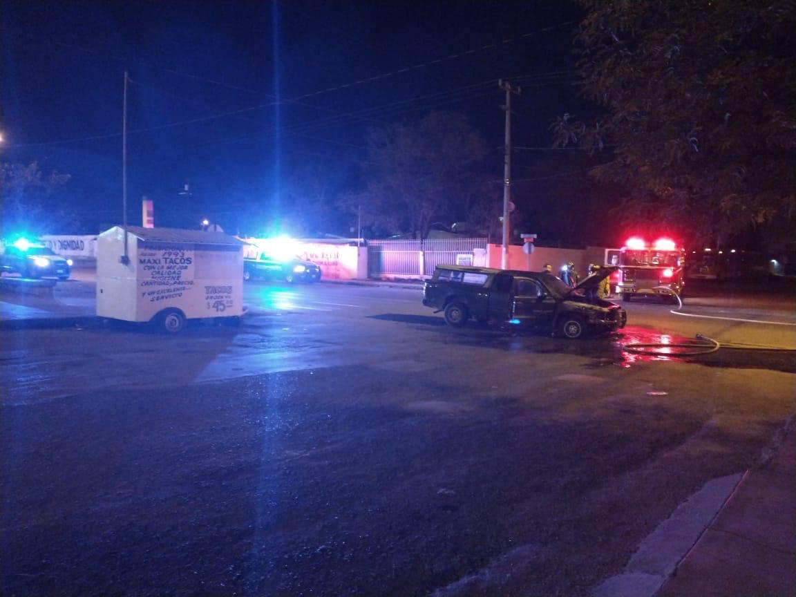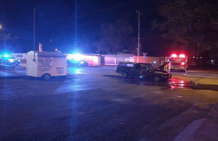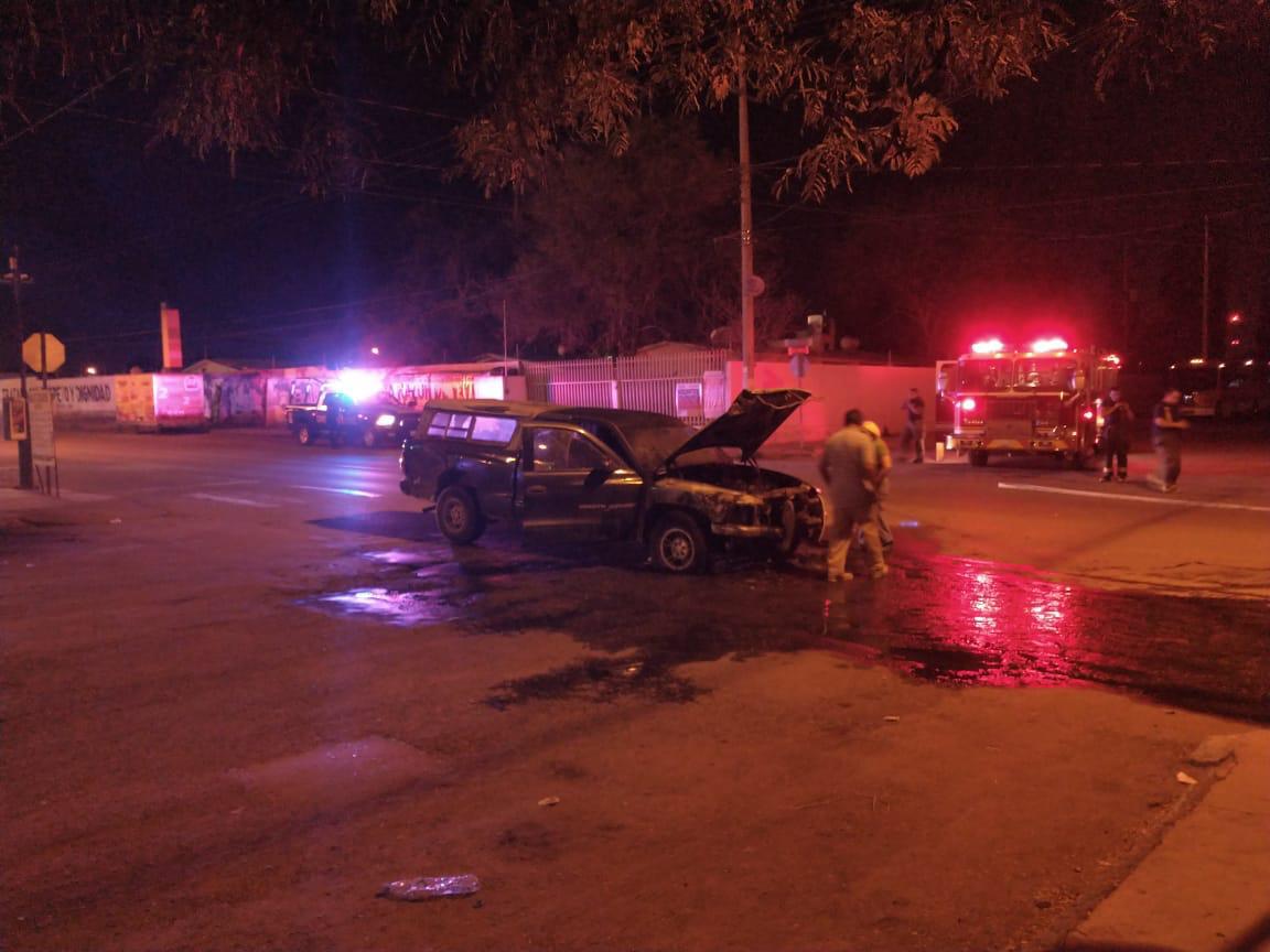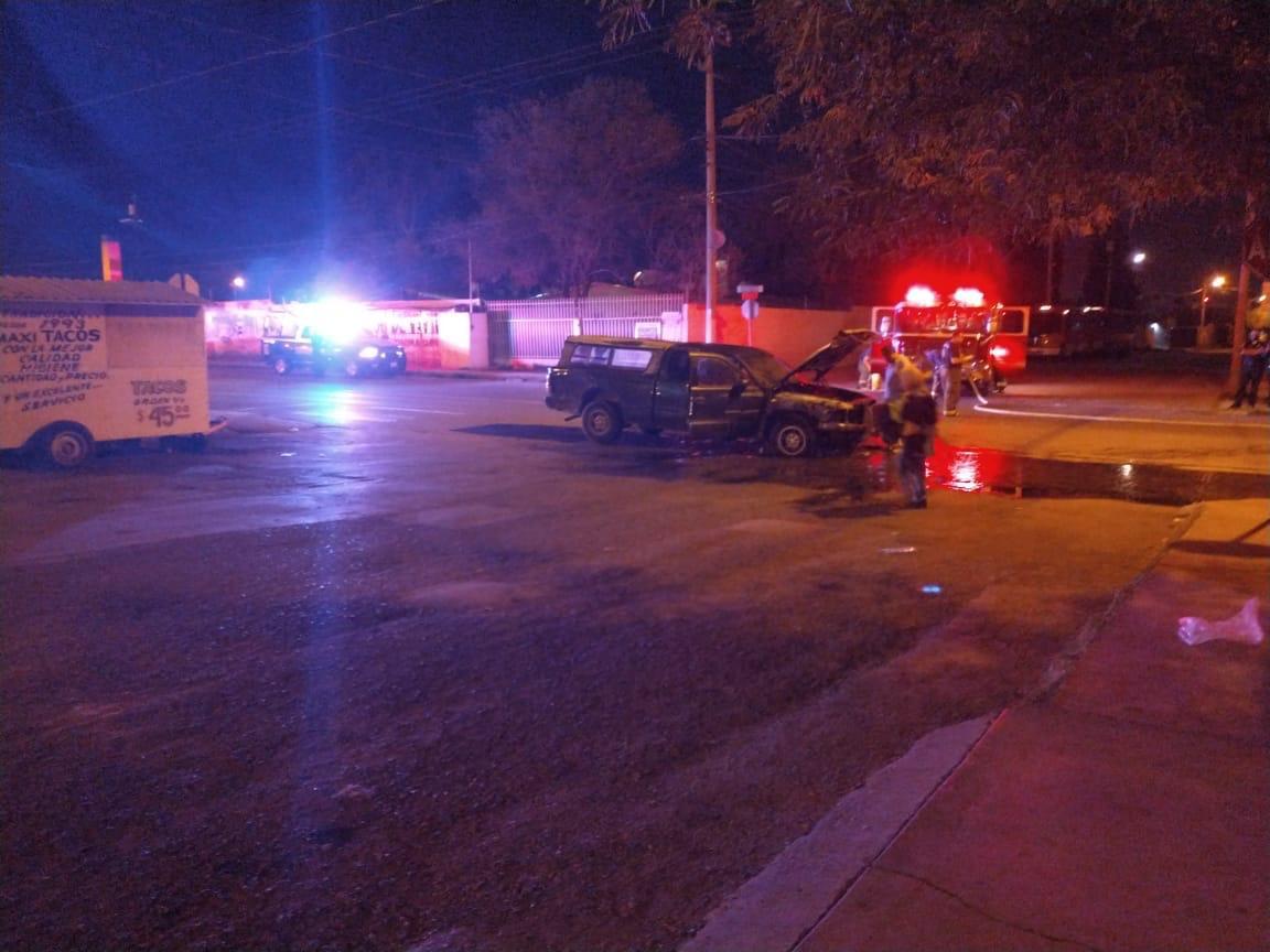 Chihuahua.- Esta madrugada se reportó a los números de emergencia el incendio de un vehículo automotor pick up Dodge Dakota en la colonia Villa Juárez al sur de la ciudad.