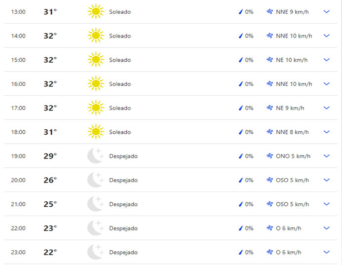 Habrá una humedad del 49 por ciento y existe muy poca posibilidad de lluvias con probabilidad del 0 al 5 por ciento entre las 07:00 y 23:00 horas.