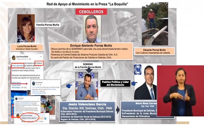 “Los cebolleros que es otra familia ligada al diputado local, Jesús Valenciano, que ustedes lo han visto en varios videos, llego a la represa, increpó a la guardia nacional, les dio un ultimátum para que se fueran y les dijo que si no se iban les iba a pasar lo mismo que en “La Boquilla”, bueno pues ese diputado es pariente de una familia dedicada a la sobreexplotación, son cebolleros”, dijo Mejía Berdeja.