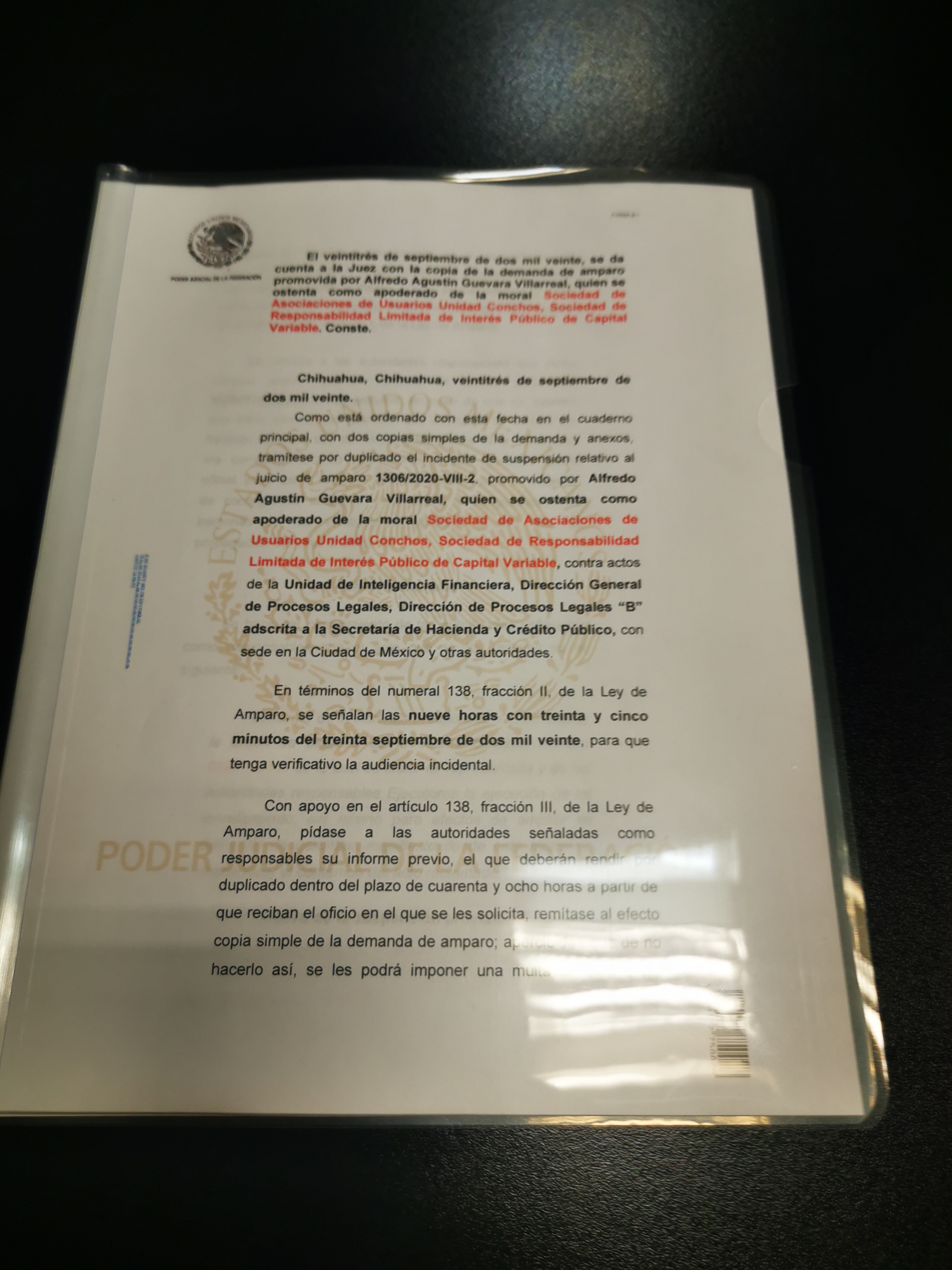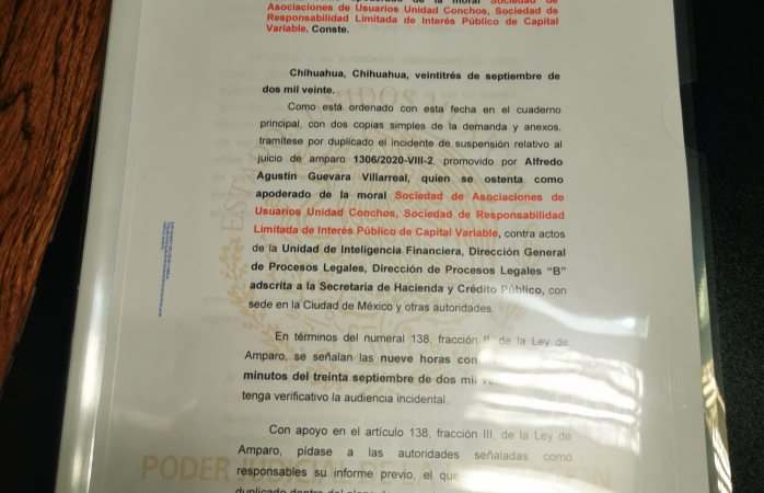 Delicias.- Salvador Alcantar Ortega presidente de la Asociación de Usuarios de Riego de Chihuahua (Aurech), confirmó que tramitaron un amparo para que se descongelen las cuentas bancarias de la SRL Unidad Conchos, Aurech y las particulares.