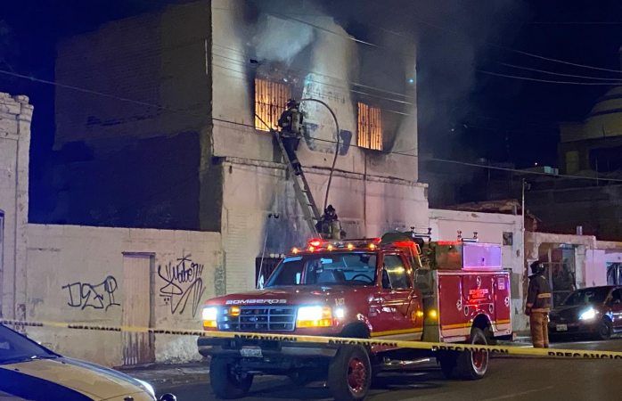 Chihuahua.- Esta noche se registró un fuerte incendio en un edificio que se encontraba abandonado en las inmediaciones del centro de la ciudad