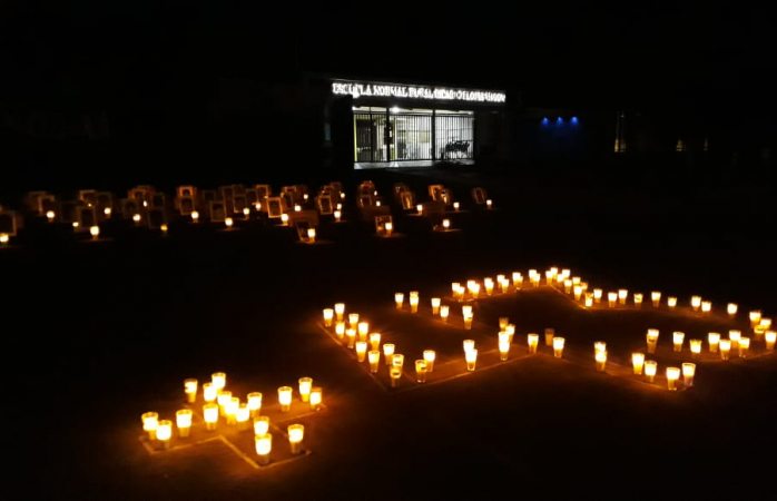 En la explanada de la escuela marcaron el número 43 en grande y lo cubrieron con veladoras.