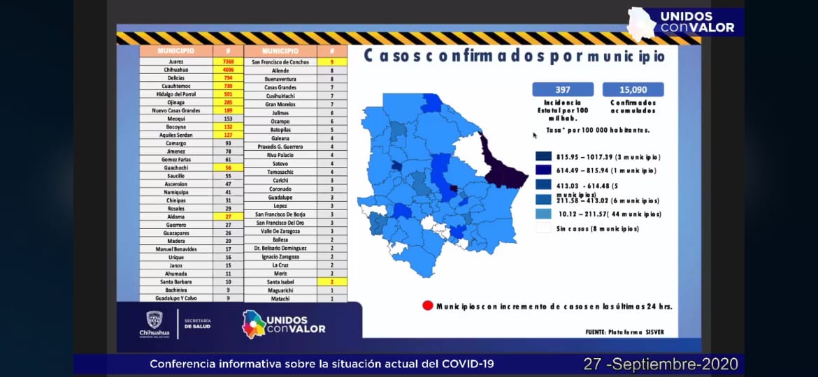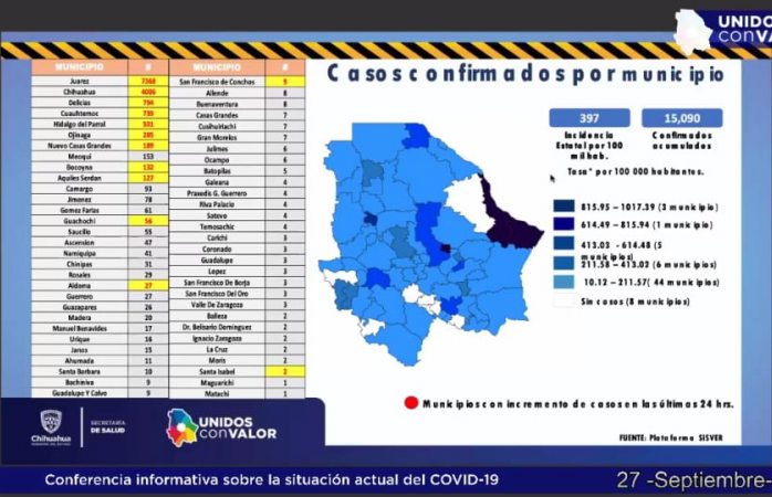 Chihuahua.- La cifra oficial de casos confirmados de covid en esta ciudad, superó los 4 mil contagios.