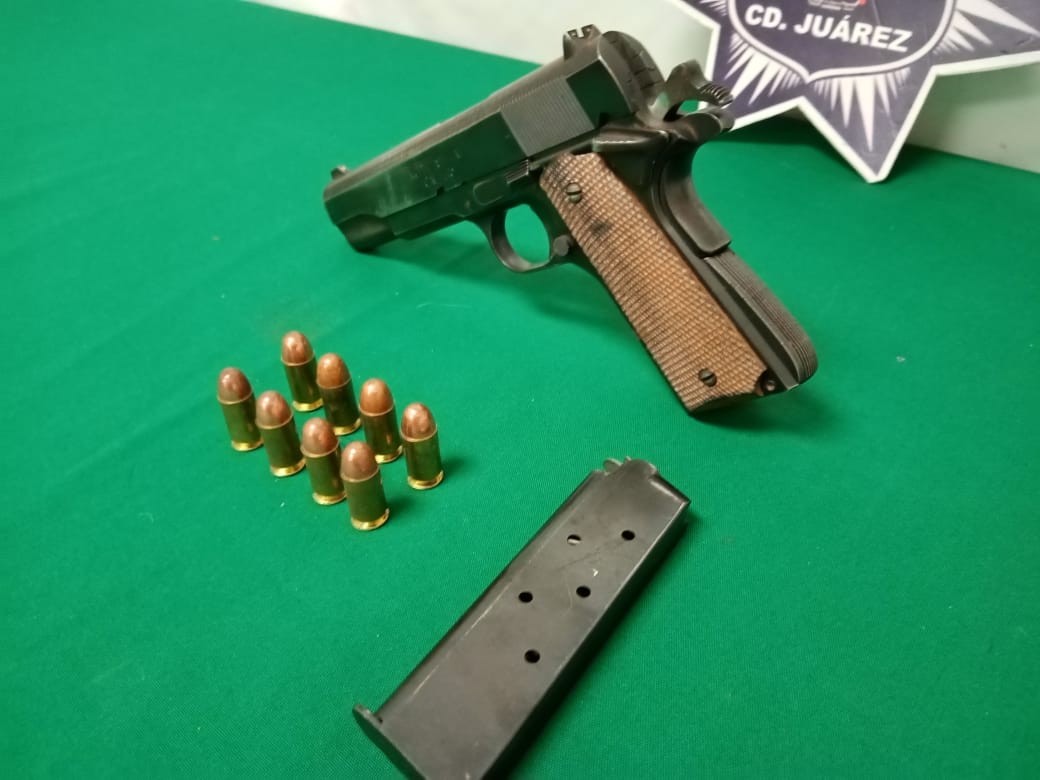 Ciudad Juárez.-Policías de la Secretaría de Seguridad Pública Municipal detuvieron a Fernando R. R., d 50 años de edad, por su presunta responsabilidad en la comisión de delitos contra la ley federal de armas de fuego y explosivos.