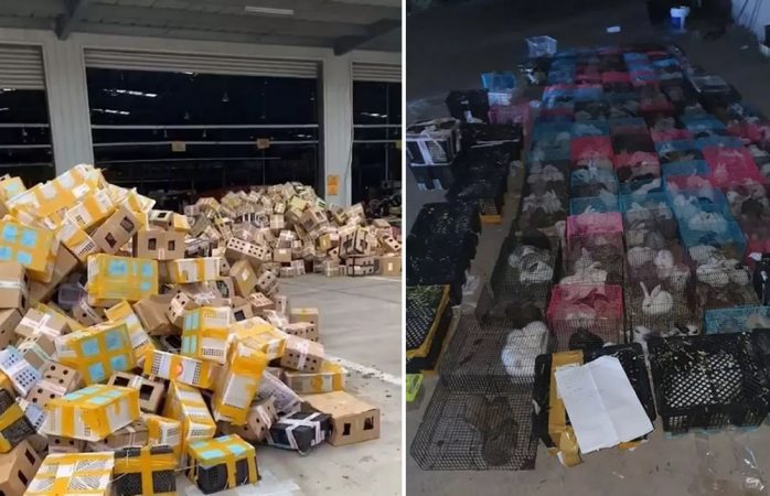 China. - Al menos 5 mil animales fueron encontrados sin vida dentro de cajas de cartón al interior de un almacén de envíos de paquetería en la ciudad de Luohe, en China.