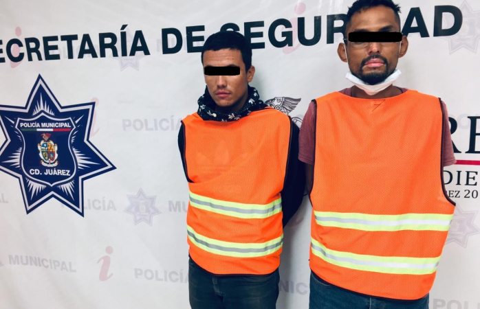 ciudad Juárez.- Agentes de la Secretaría de Seguridad Pública Municipal realizaron el arresto de Arturo R. Z. y Carlos Daniel I. C., por su presunta responsabilidad en la comisión del delito de tráfico de personas, luego de que fueron señalados plenamente por siete personas de intentarlos cruzar a los Estados Unidos de manera ilegal.
