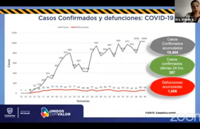 Chihuahua.- De acuerdo a las cifras proporcionadas por la doctora Wendy Ávila, este día se registró un incremento de 19 mil 404 casos confirmados de covid a nivel estatal.
