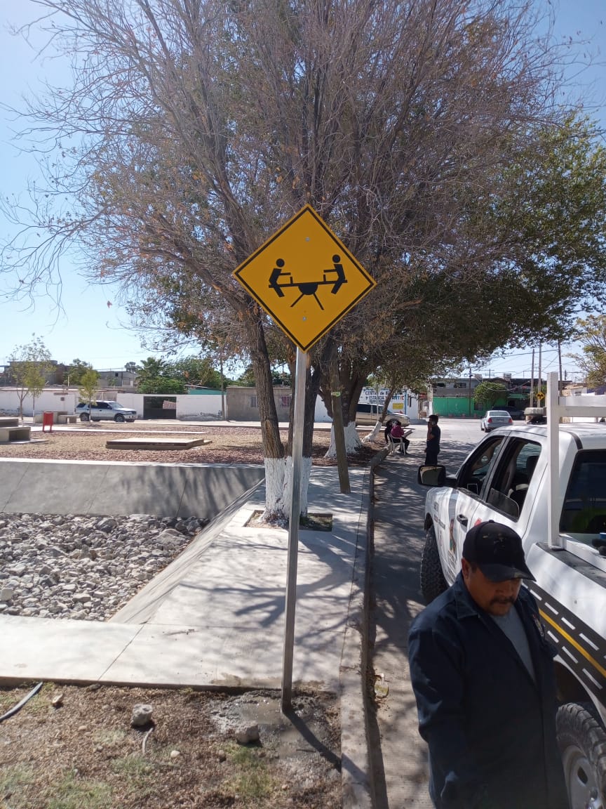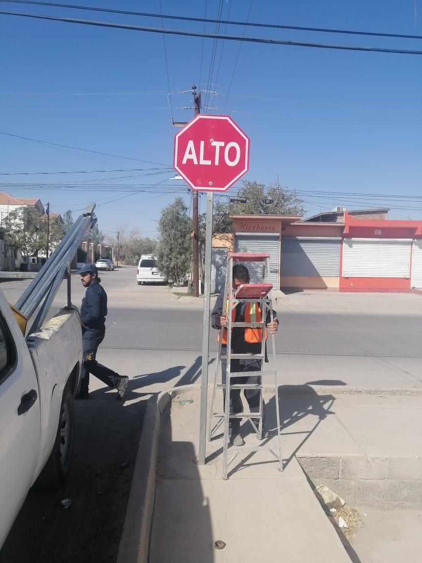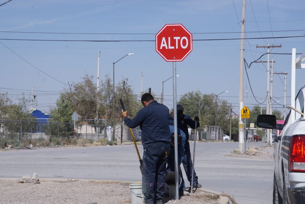Juárez.- La Coordinación General de Seguridad Vial, a través del Departamento de Control de Tráfico, trabajaron en la instalación y mantenimiento de señalización en la zona suroriente y otros puntos de la ciudad.