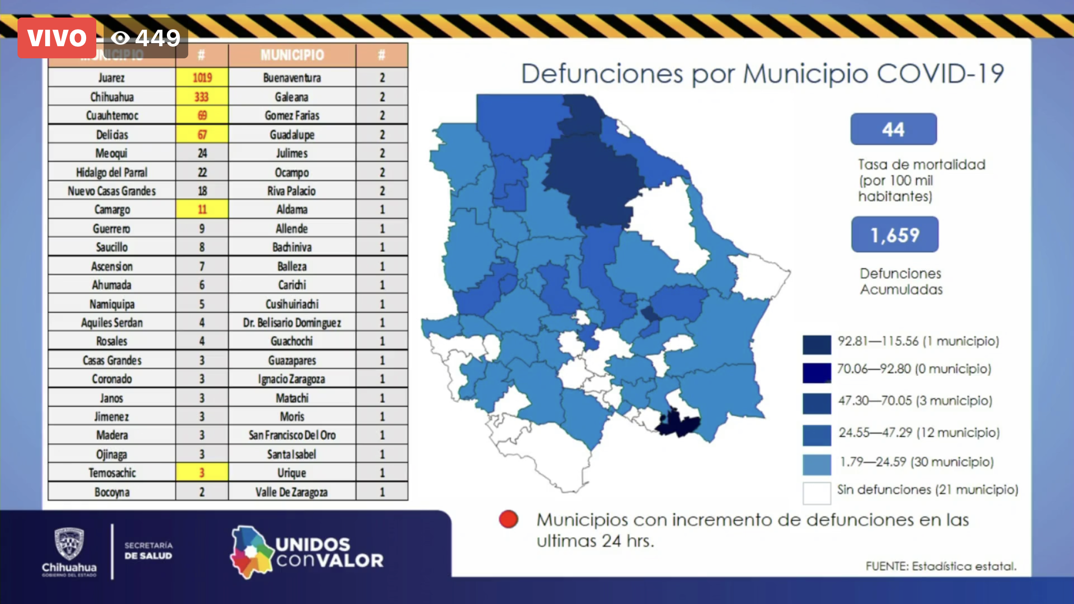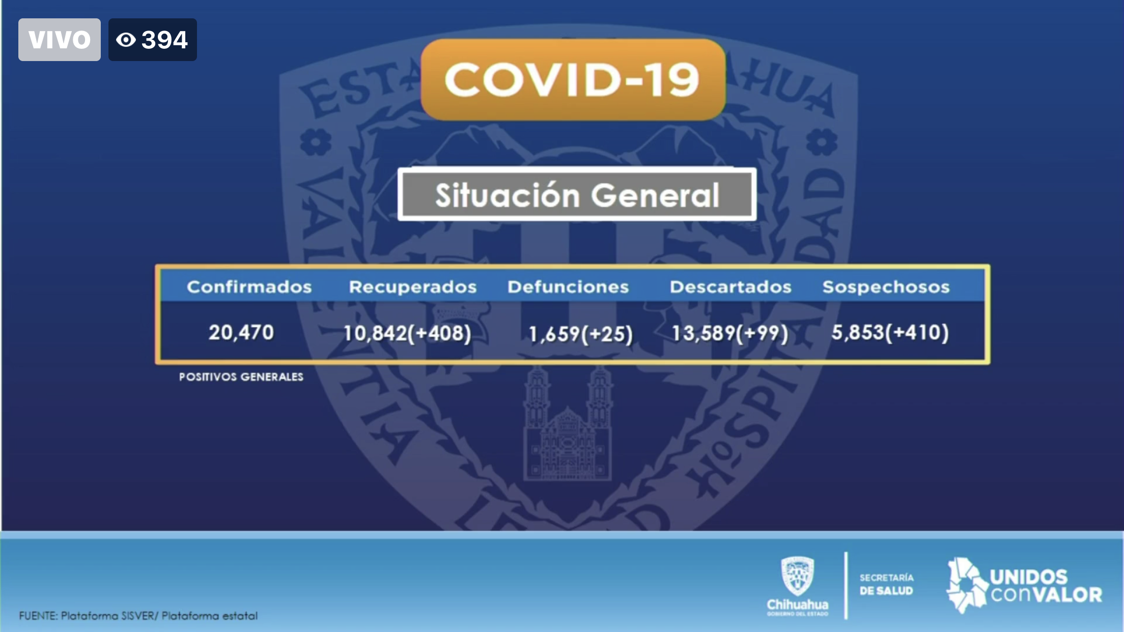 Respecto al número de defunciones, se sumaron 25 decesos más a la estadística oficial, la cual se elevó a 1 mil 659.