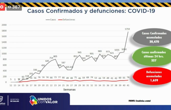 Hasta ayer a las 19 horas, la secretaría de salud sumó 327 nuevos caso de covid en el estado, elevándose la cifra a 20 mil 470.