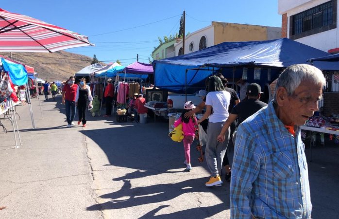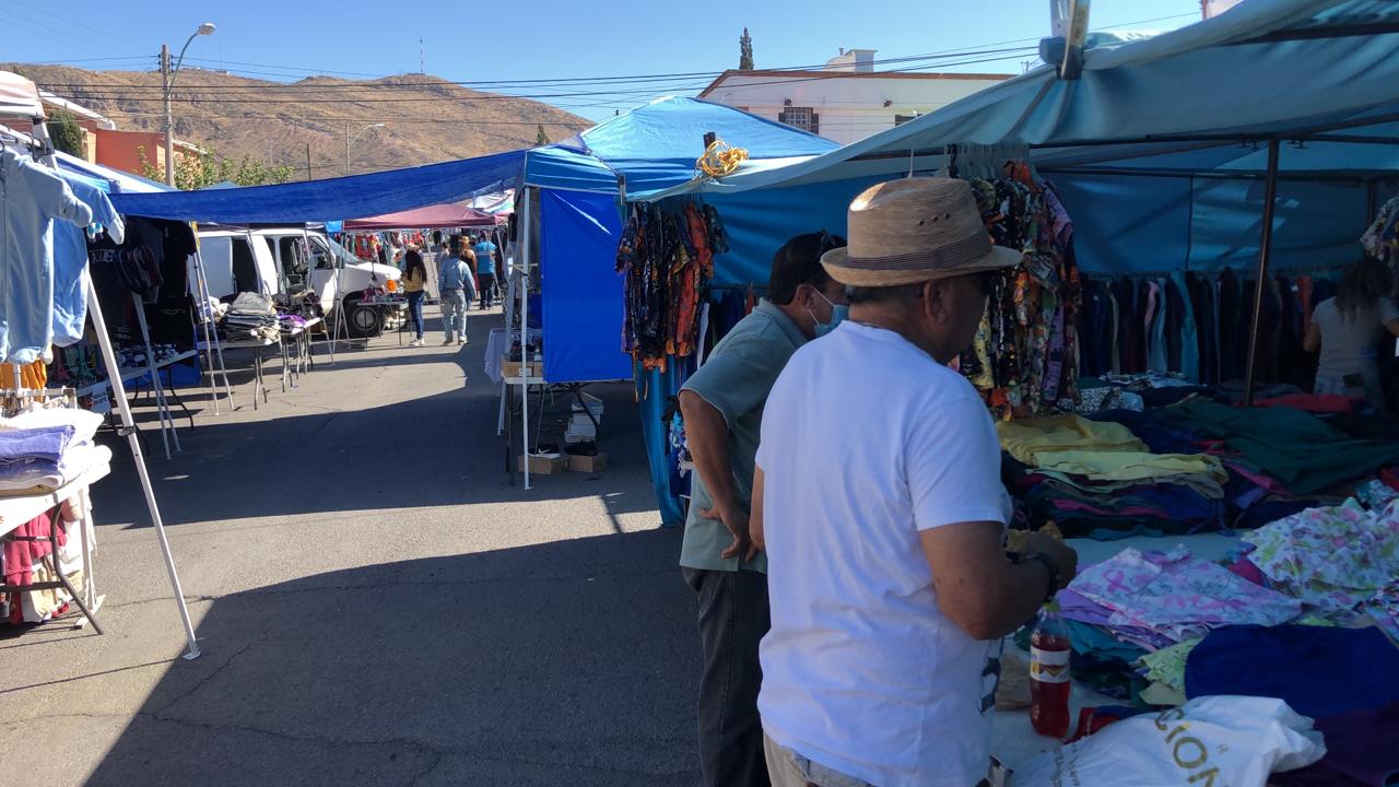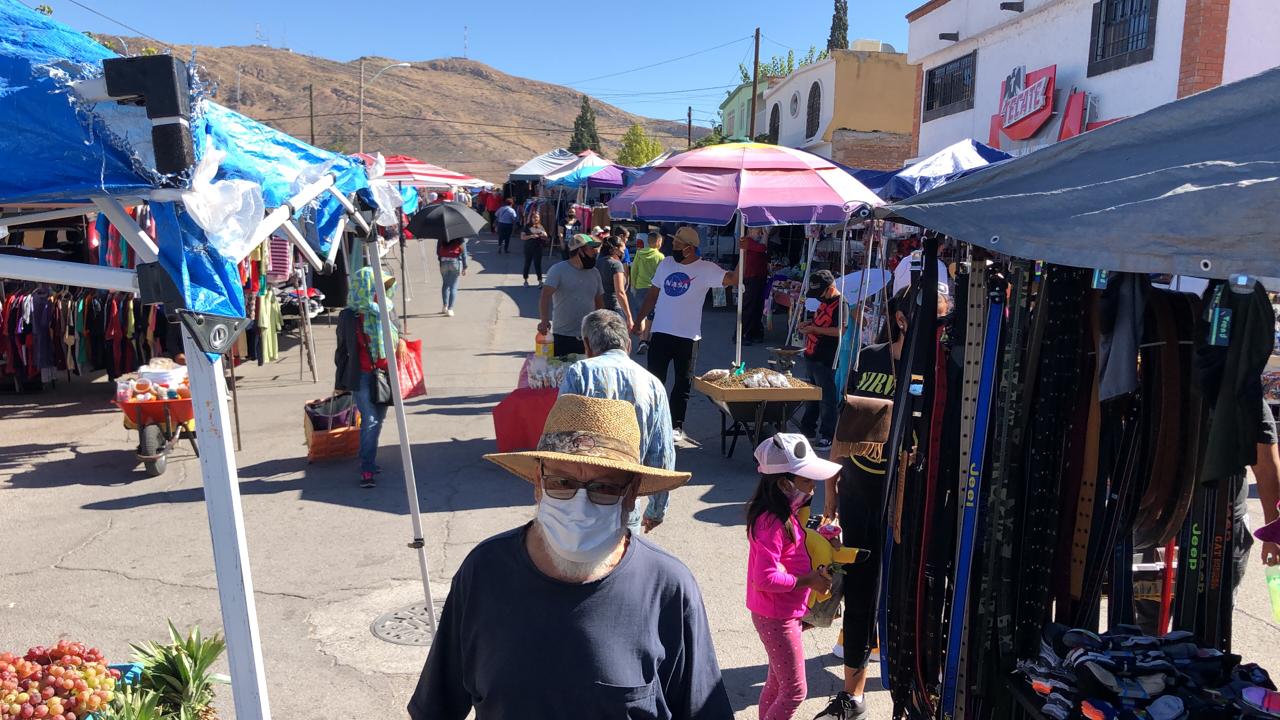 Adultos mayores y niños se pudieron observar sin portar cubreboca y sin guardar la sana distancia, deambulando entre los puestos de mercancía.