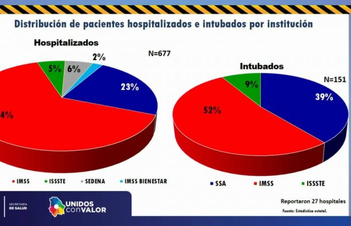 Por consiguiente, la cifra se elevó a 151 pacientes intubados, de los cuales el 54 por ciento son atendidos en el imss, el 34 por ciento en hospitales de la secretaría de salud y el 12 por ciento restante en el issste.