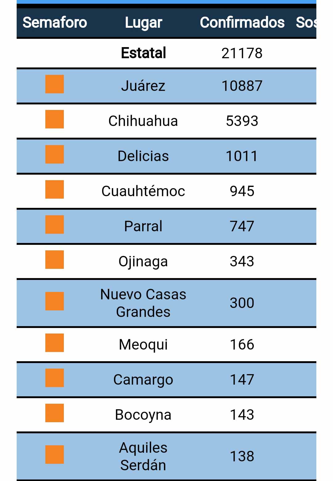 Esta mañana Se confirmó que Delicias tiene tiene 1011 casos positivos acumulados por coronavirus en lo que va de la pandemia.