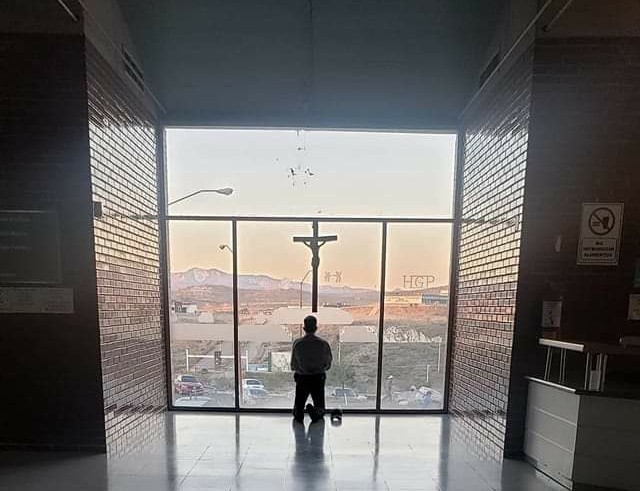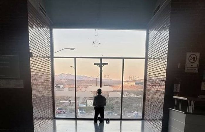 Se viraliza foto de guardia que ora en hospital de parral