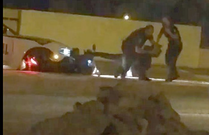 Chihuahua.-Una pareja de oficiales de la Policía Vial fueron videograbados mientras golpeaban para someter al conductor de una motocicleta.