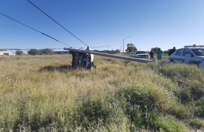 Al perder el control de la unidad se impactó contra la Renault, lo que hizo que saliera del camino e impactar el poste propiedad de la Comisión Estatal de Electricidad (CFE).