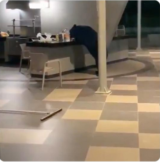 Los trabajadores del club intentaron espantar al oso desde lejos, lanzando artículos hacía el para ahuyentarlo, sin embrago, el animal siguió en el establecimiento.