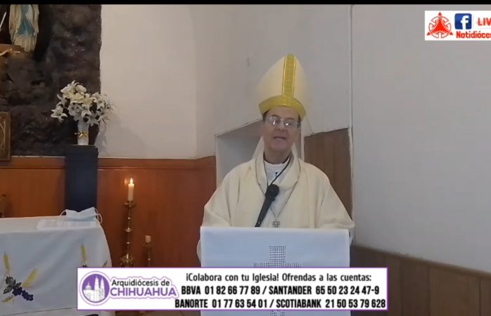 Chihuahua.- Constancio Miranda, arzobispo de la Catedral de Chihuahua, durante la misa celebrada este domingo por la página de Facebook Notidiócesis, comentó que Jesús es el juez del mundo
