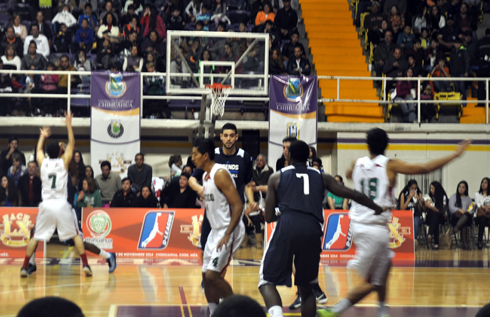 Chihuahua.- En el gimnasio Manuel Bernardo Aguirre se llevó a cabo el encuentro amistoso entre la Selección Mexicana Universitaria y las Leyendas de Texas, en donde el Rector de la Uach, Jesús Enrique Seáñez Seánz, quien lanzó el balón decisivo para saber cuál partido empezaba el partido.